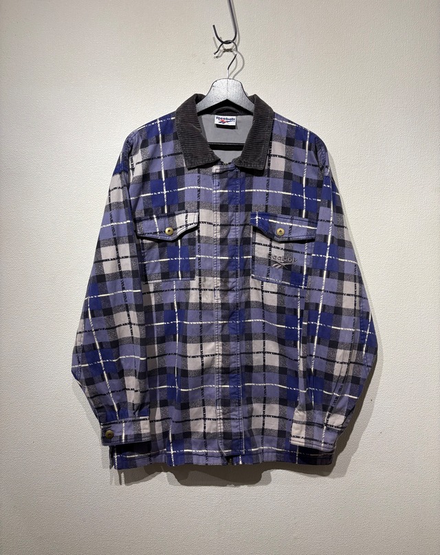 “Reebok" 90's purple base cotton fly front check pattern jacket