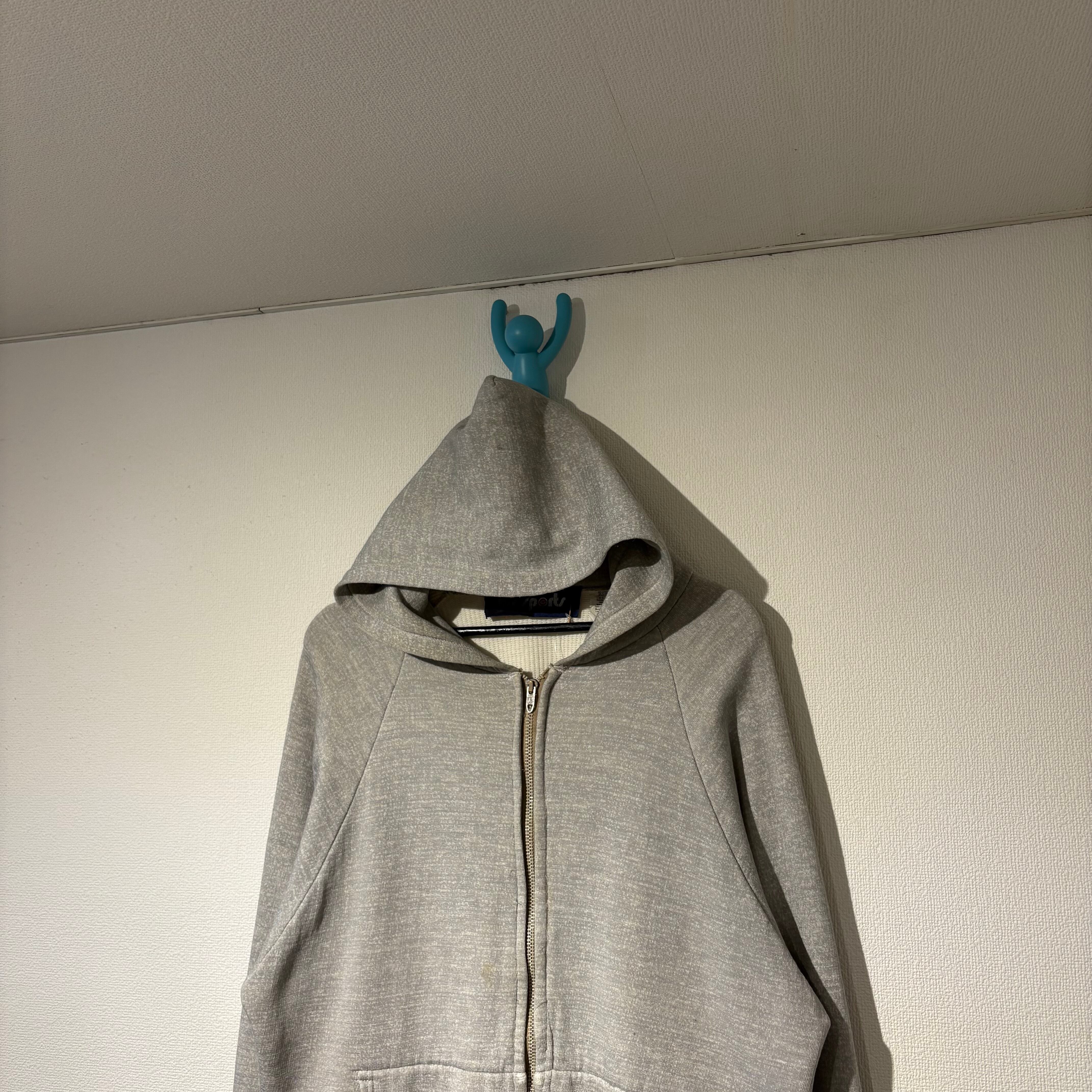 “TM SPORTS” 80’s gray base cotton/acryl double face zip-up parka