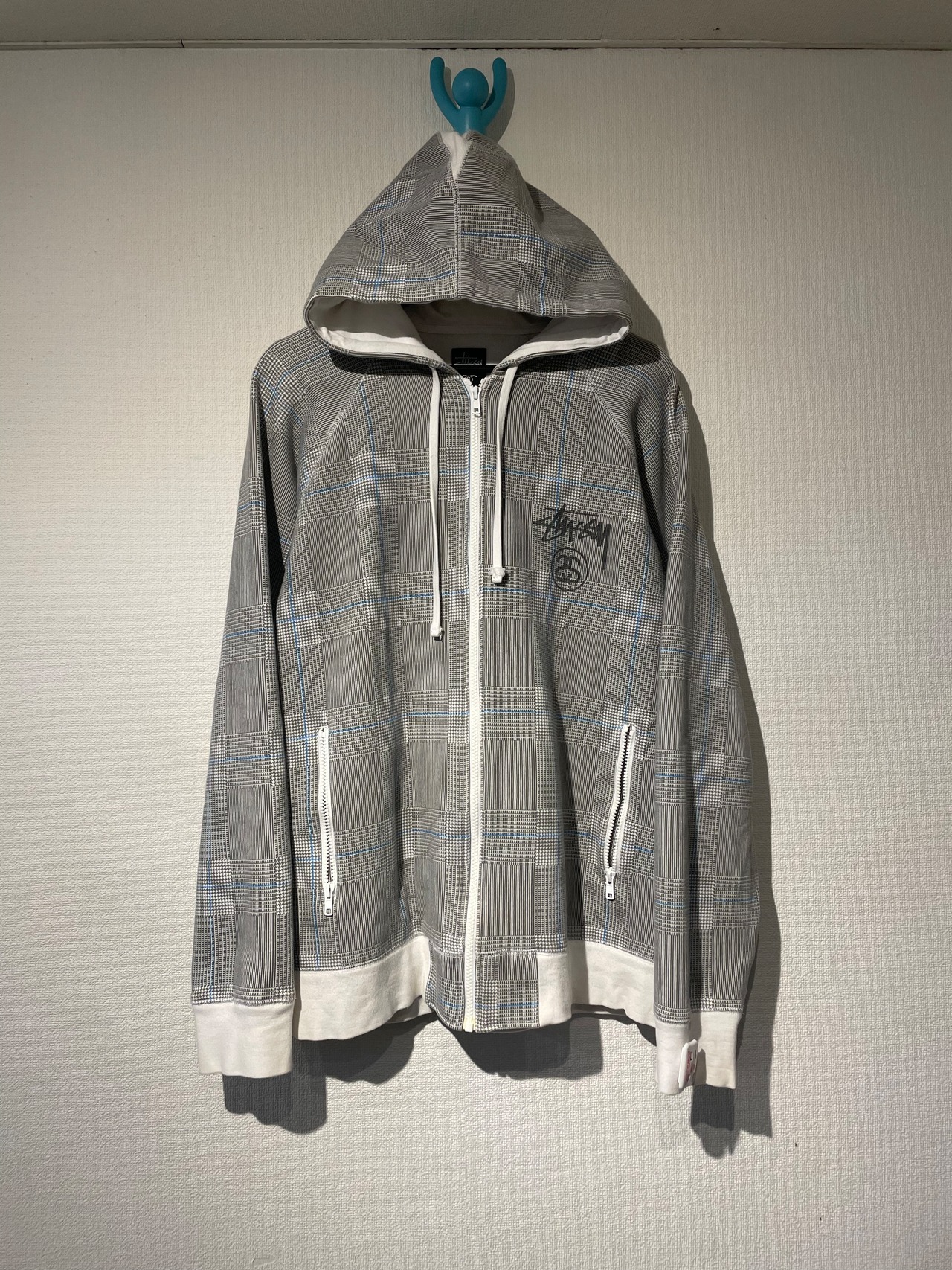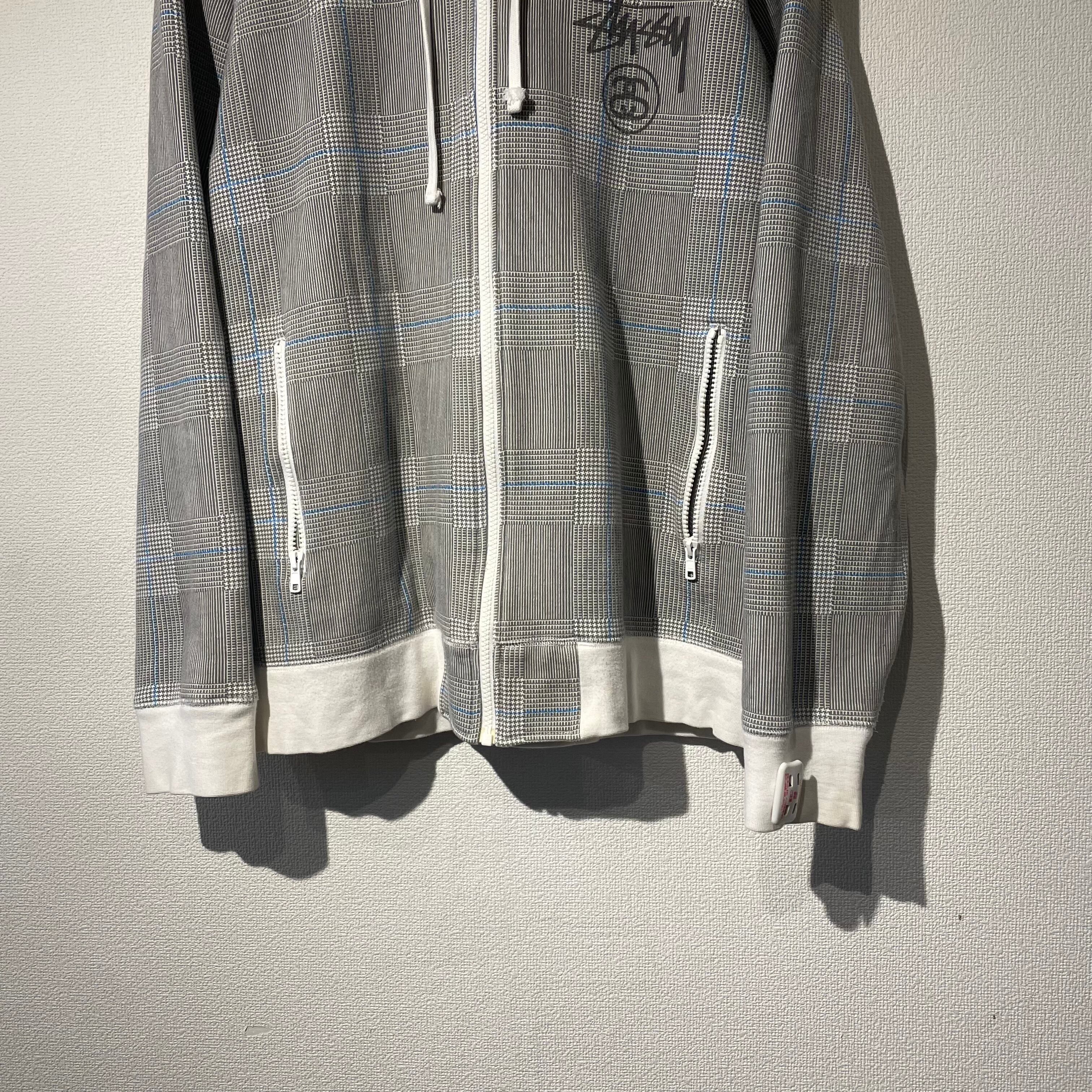 “stussy” 00’s gray×white cotton/poly check pattern zip-up hoodie
