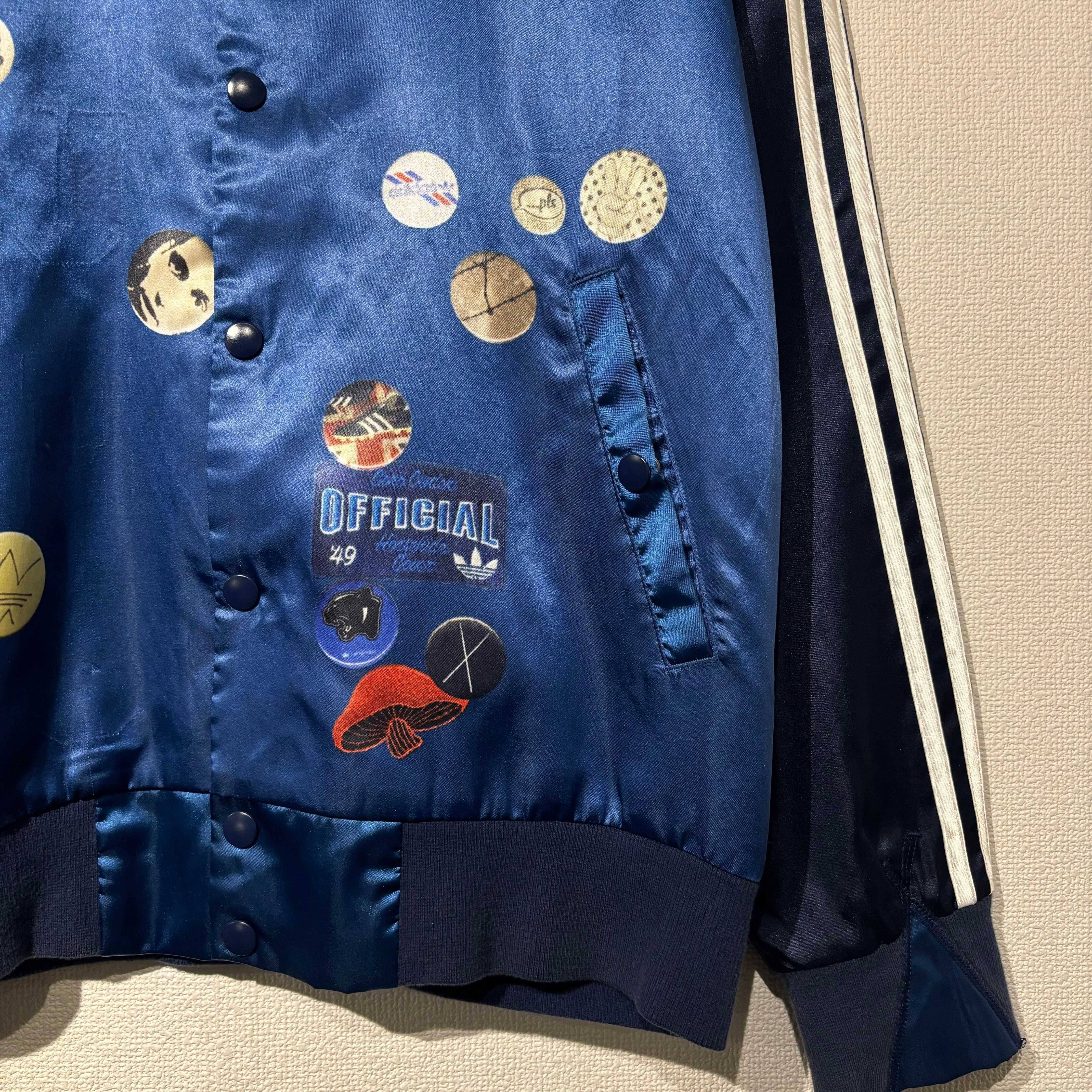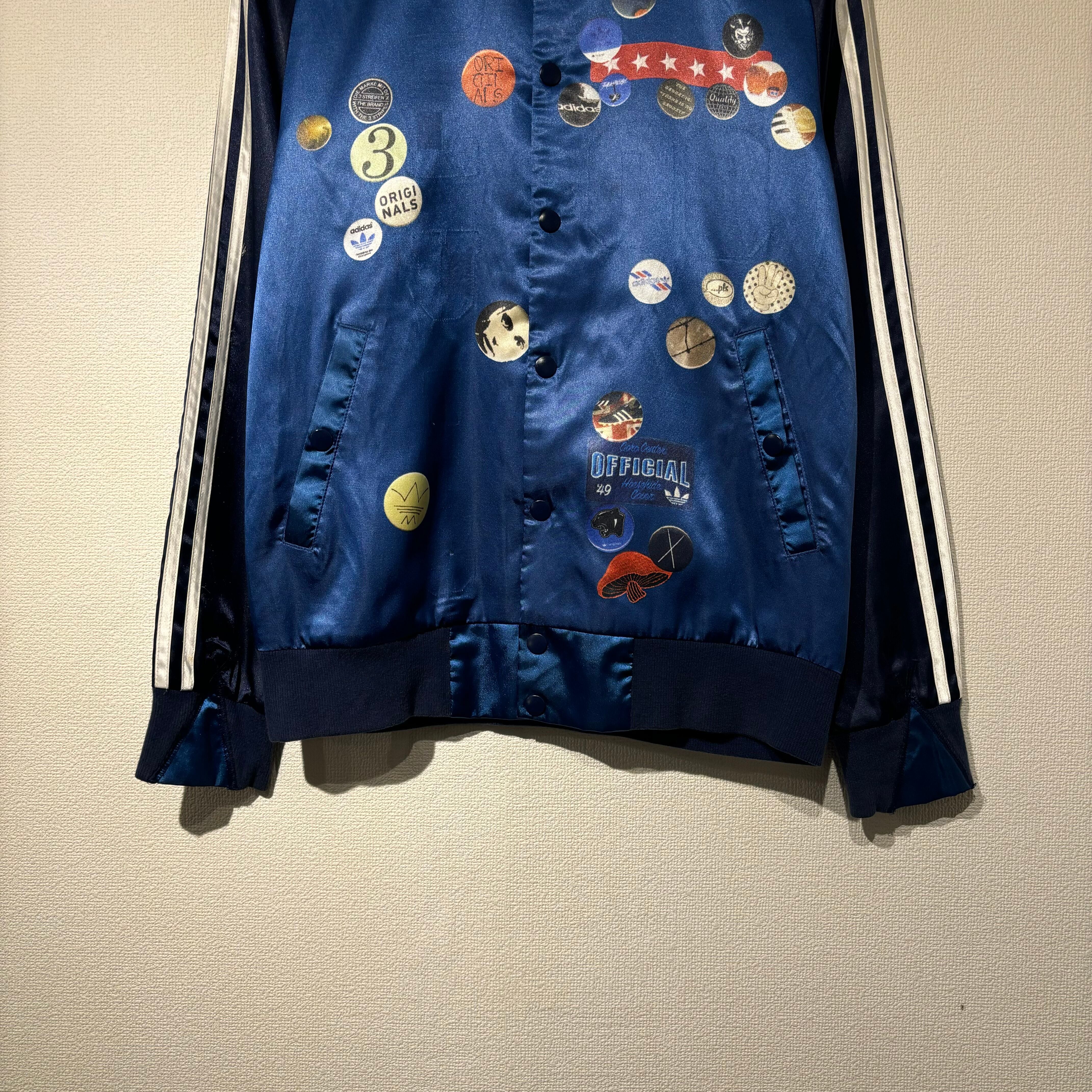 "adidas" navy×blue×white polyester transfer print studitum jacket