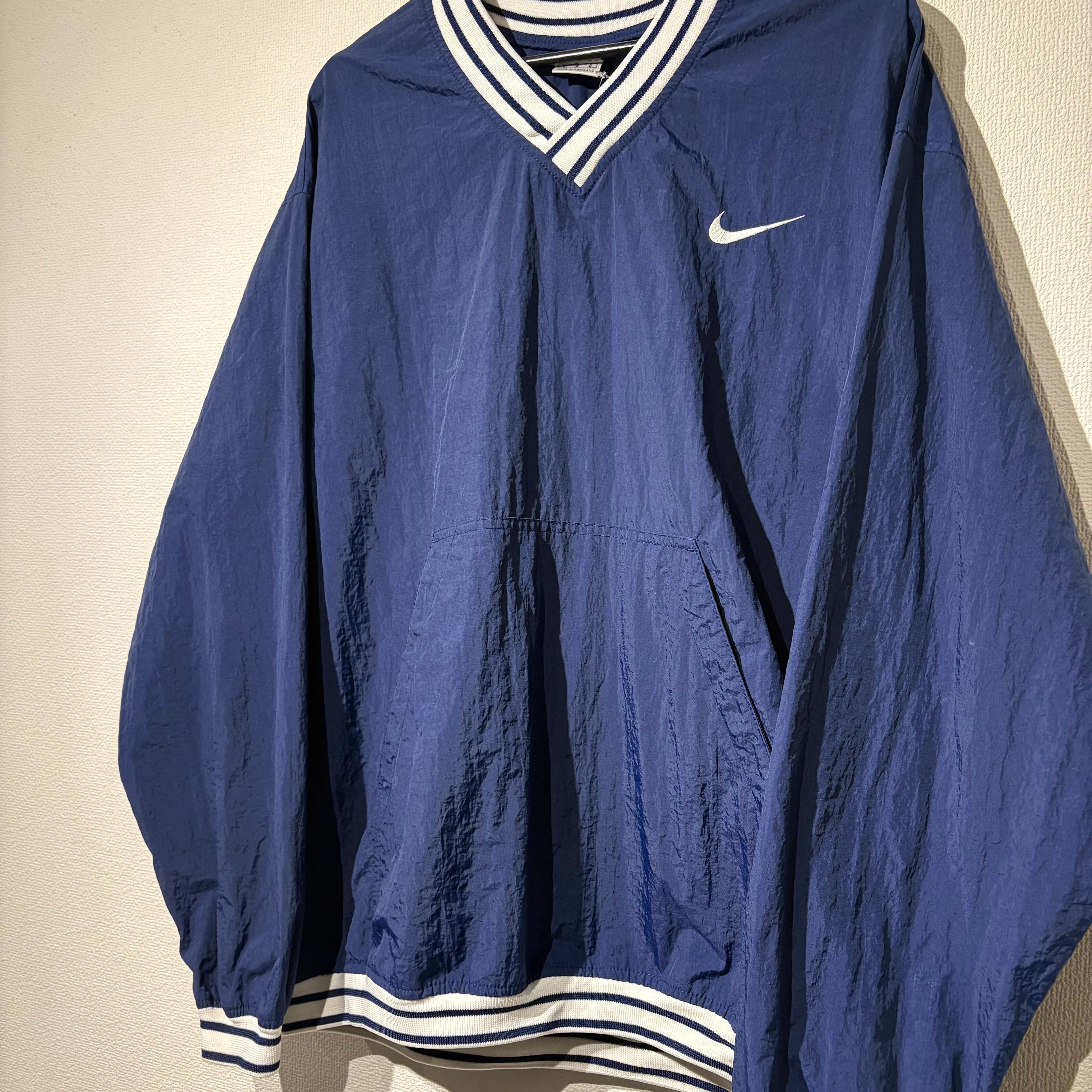 "NIKE" 90's navy×white nylon V neck pullover jacket