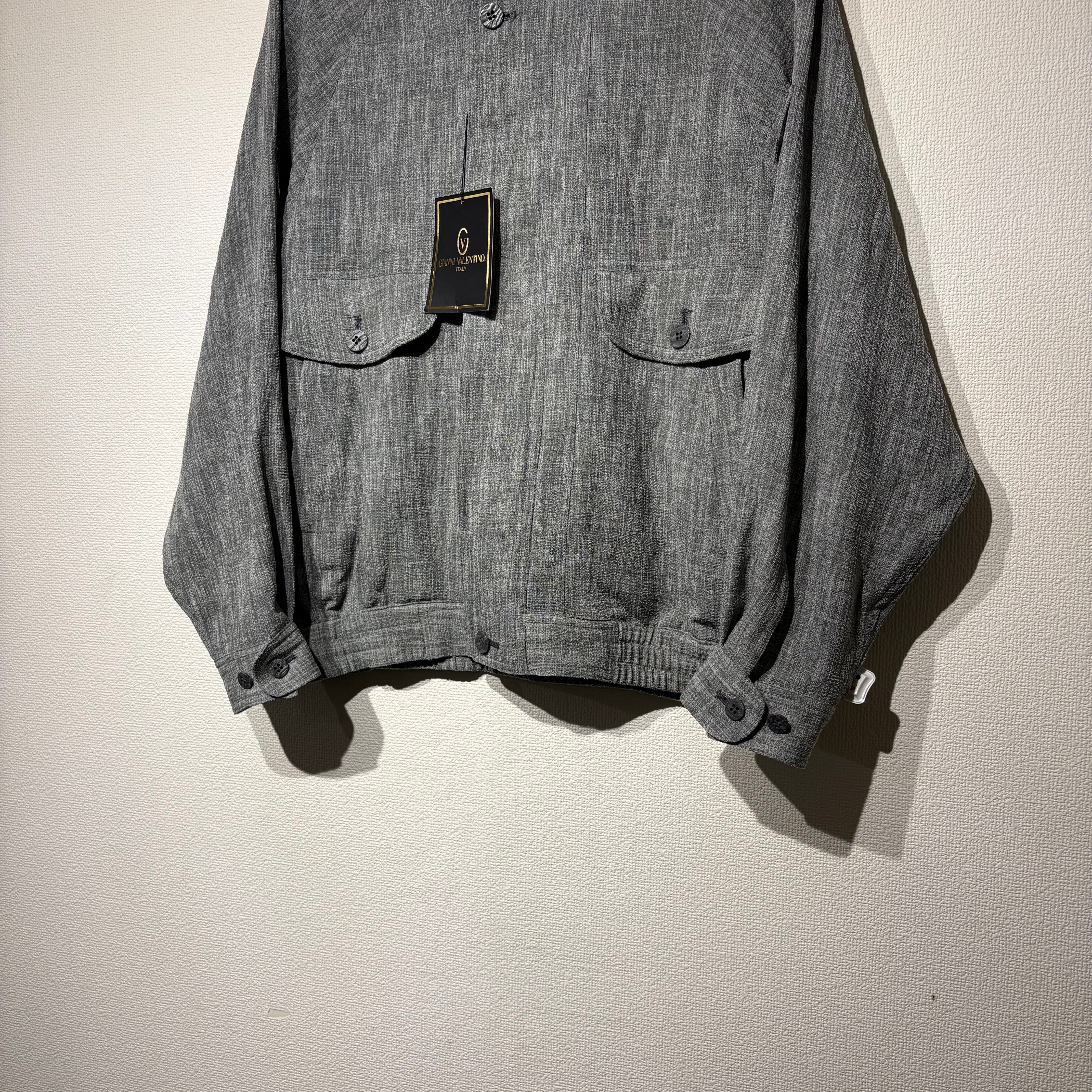 “GIANNI VALENTINO" 90's dead stock! gray base polyester stand collar fly-front blouson