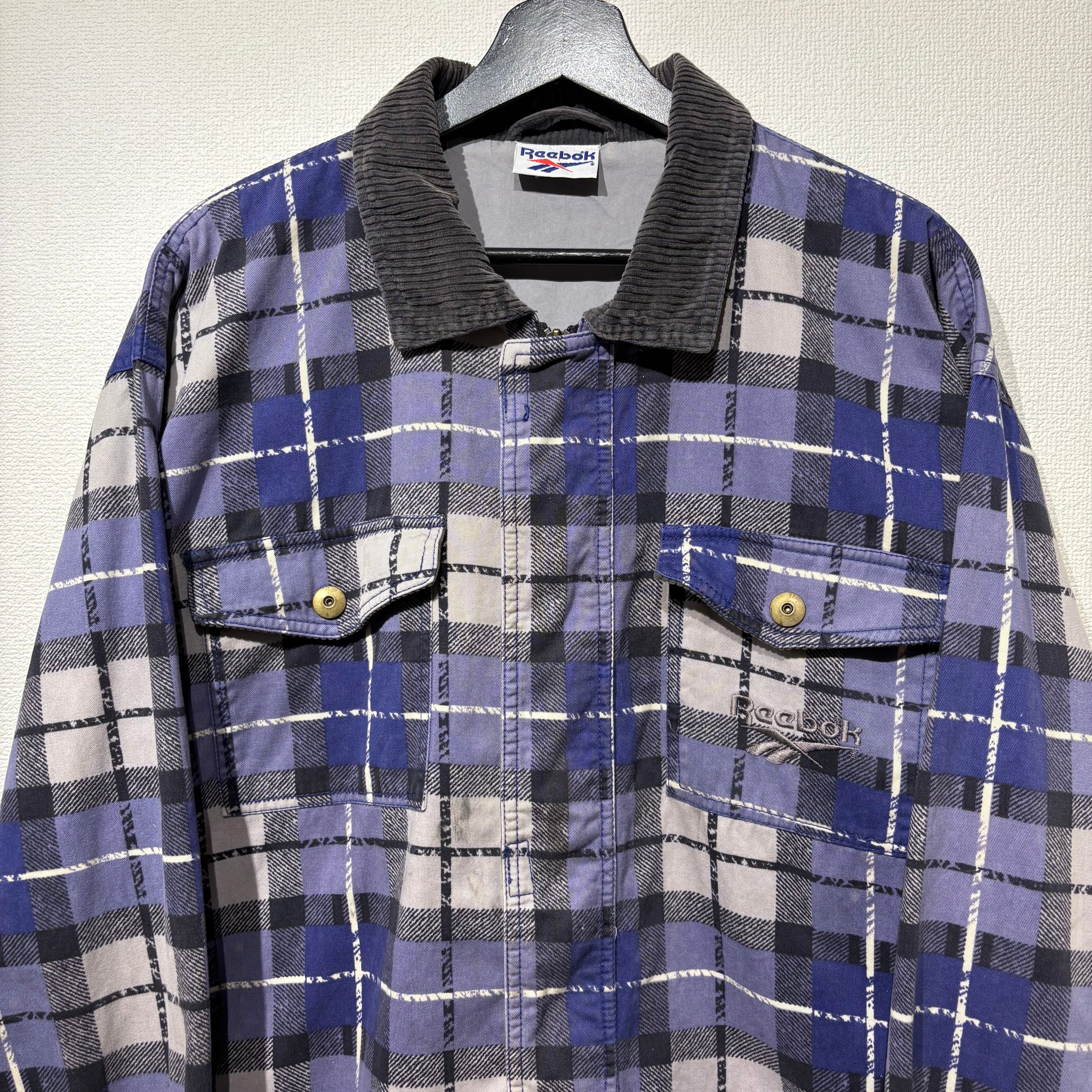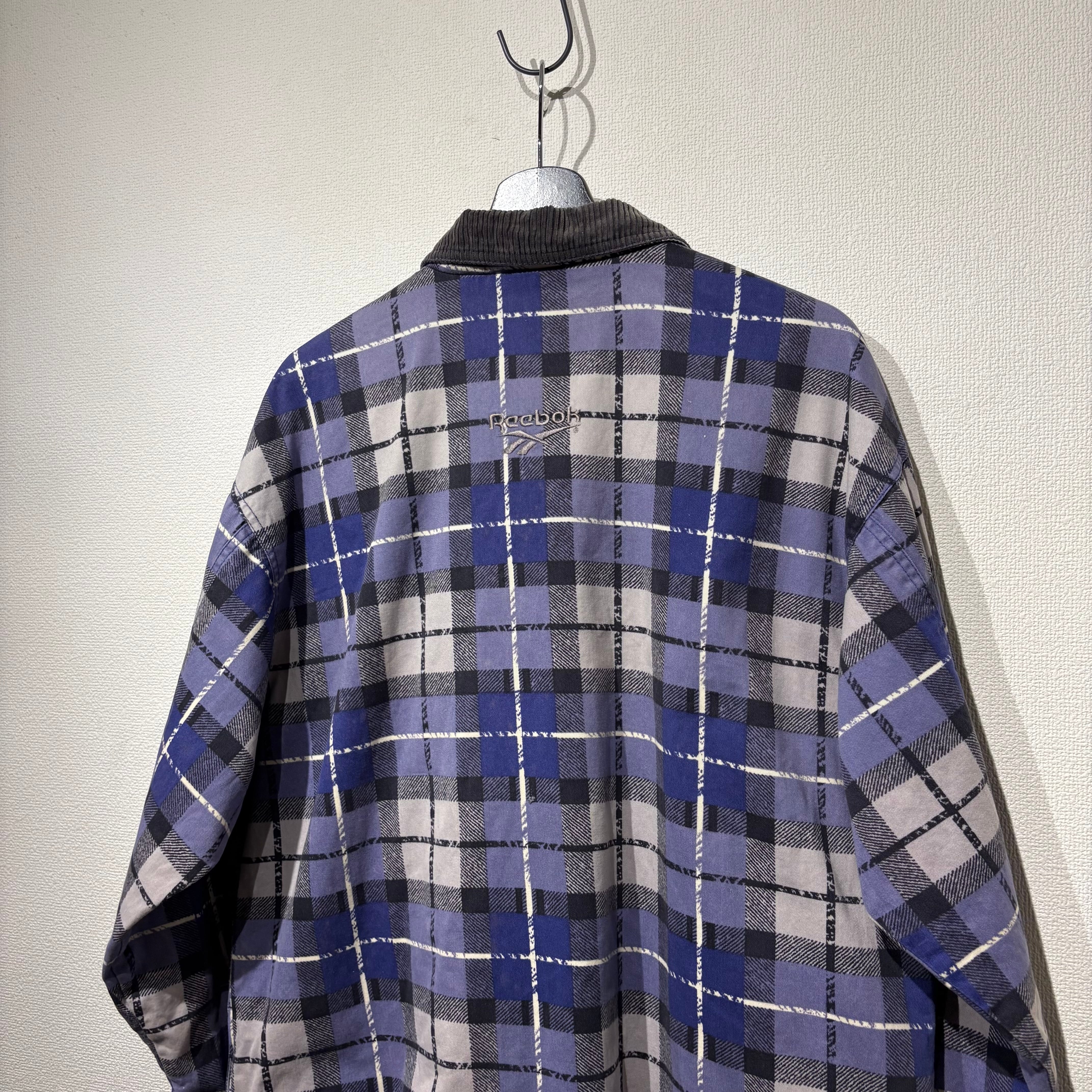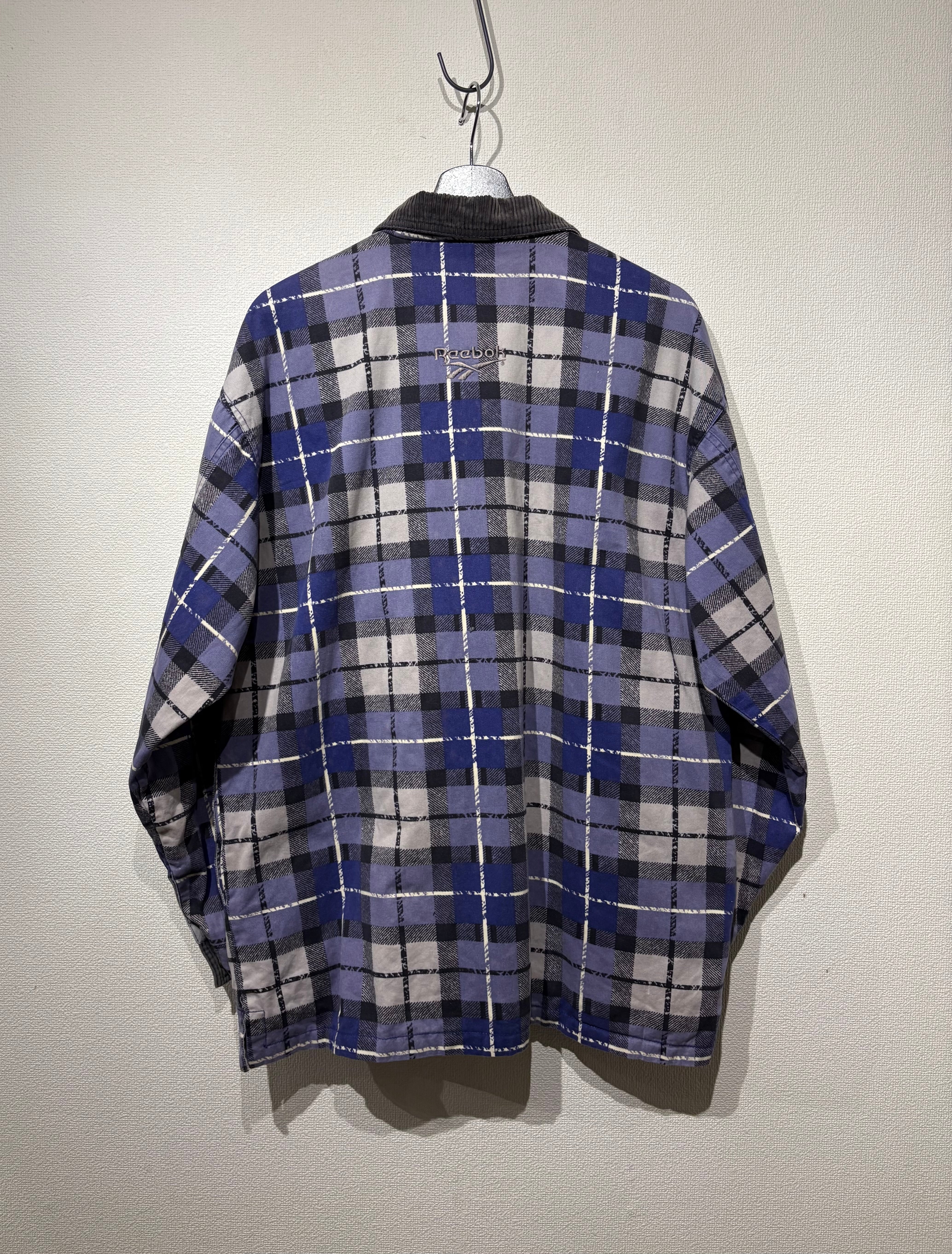 “Reebok" 90's purple base cotton fly front check pattern jacket