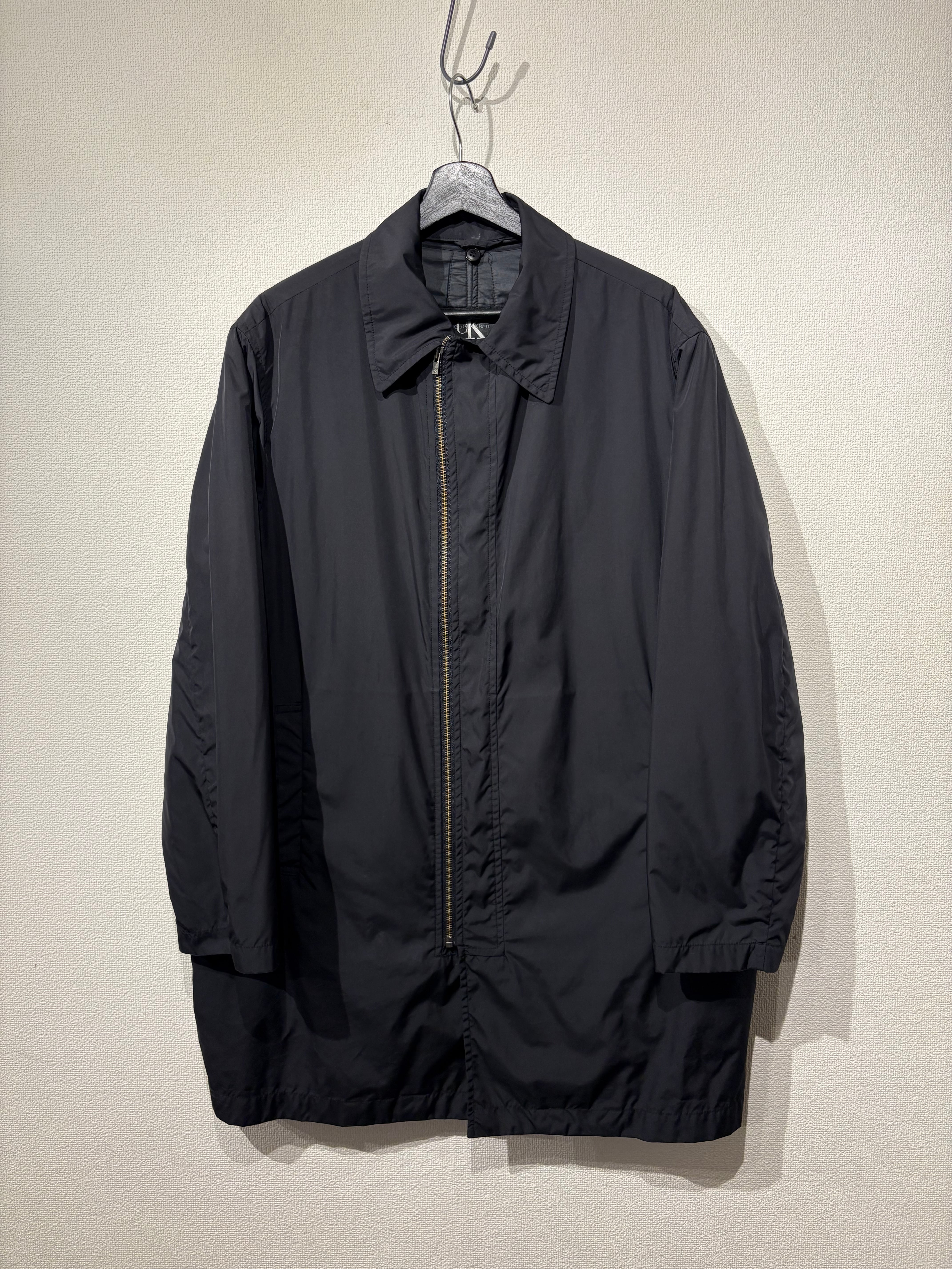 "Calvin Klein” black polyester single riders design half coat