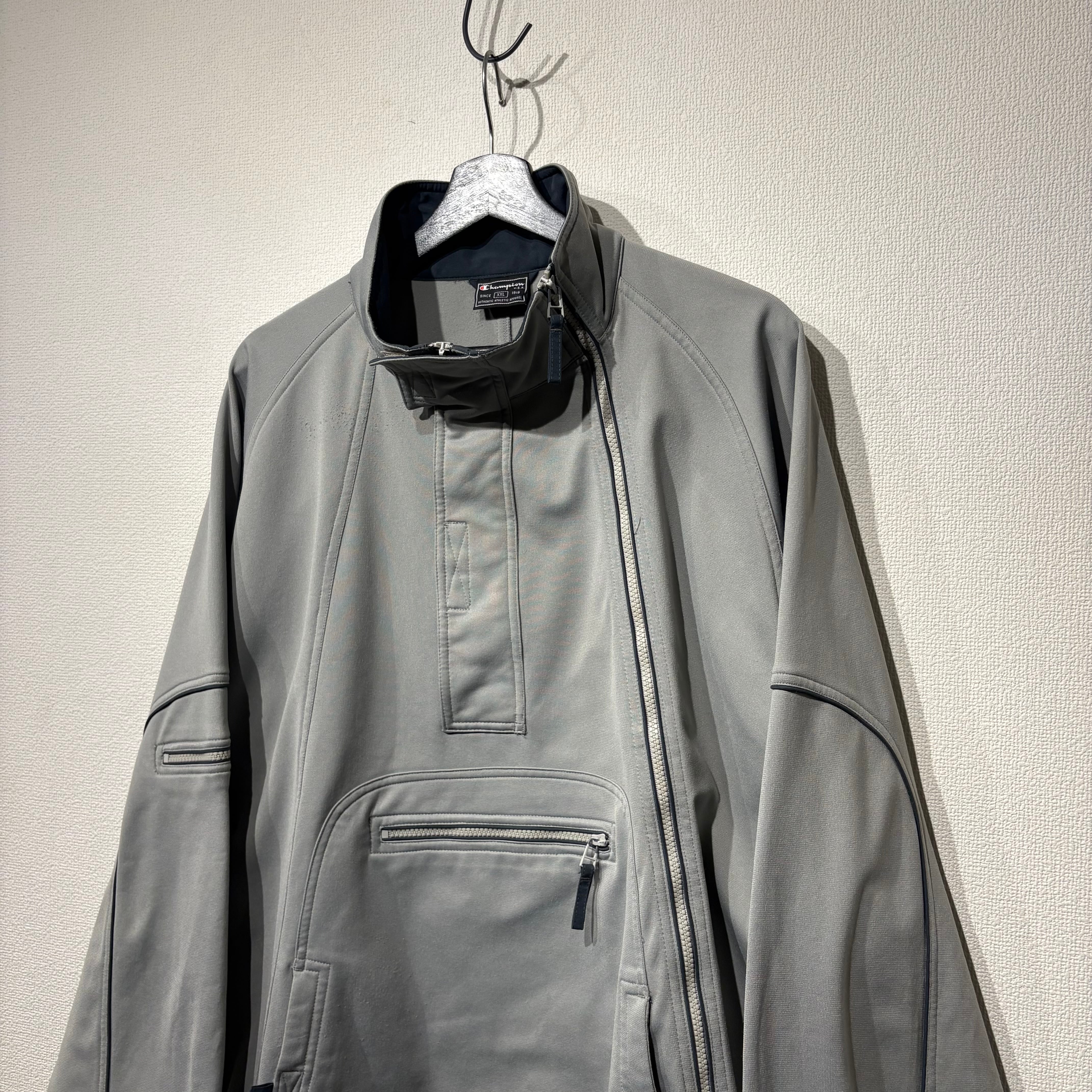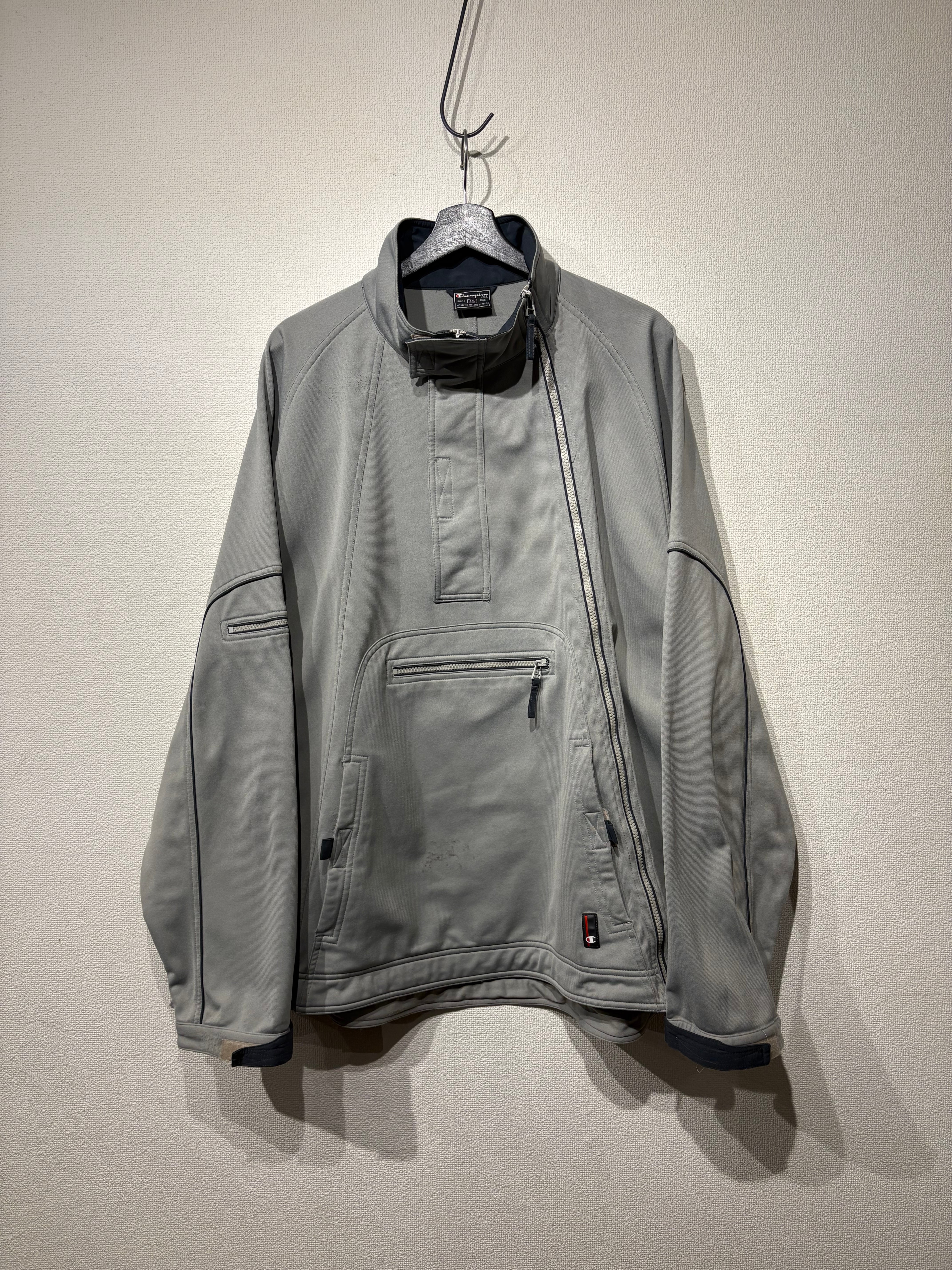 “champion" gray base zip design pullover jacket