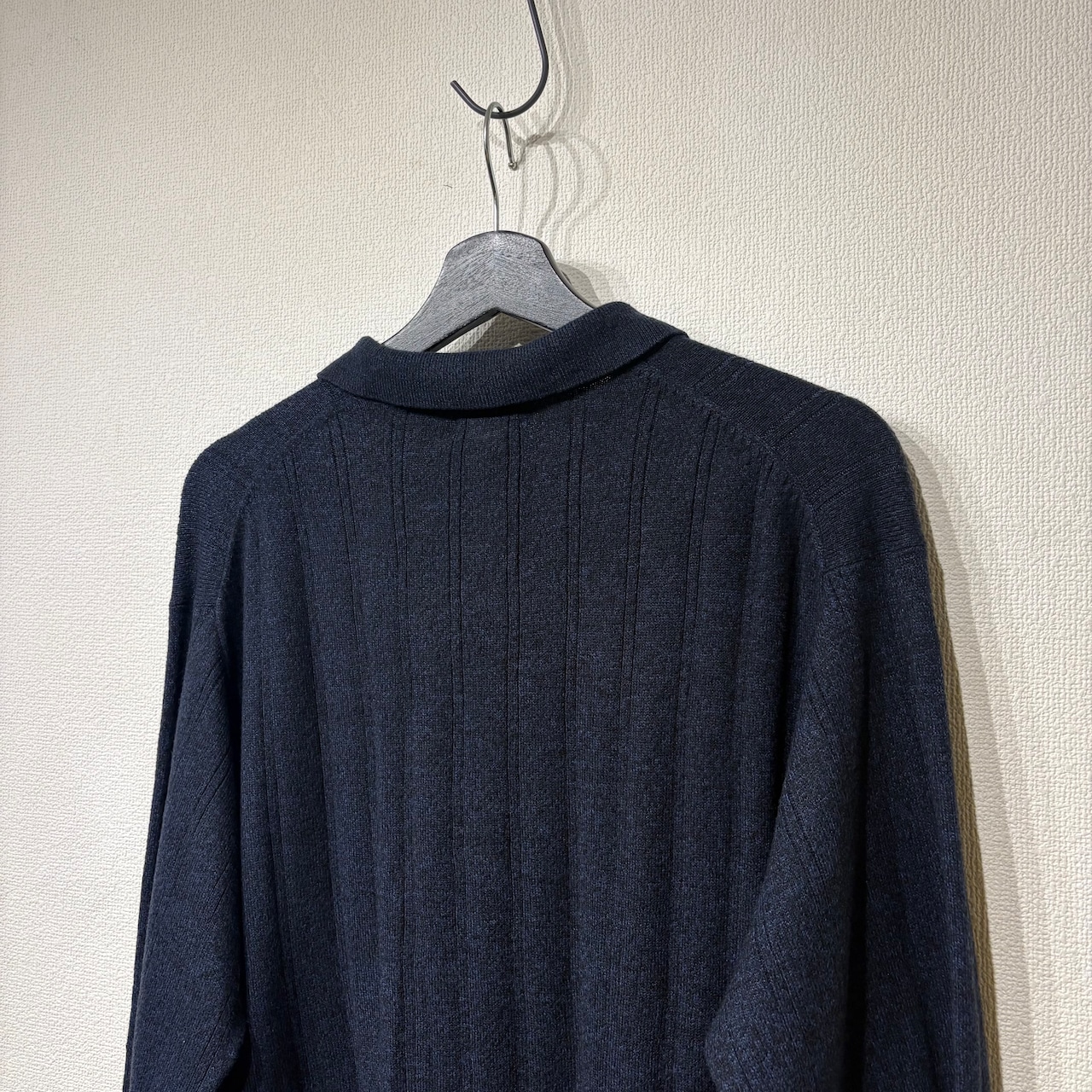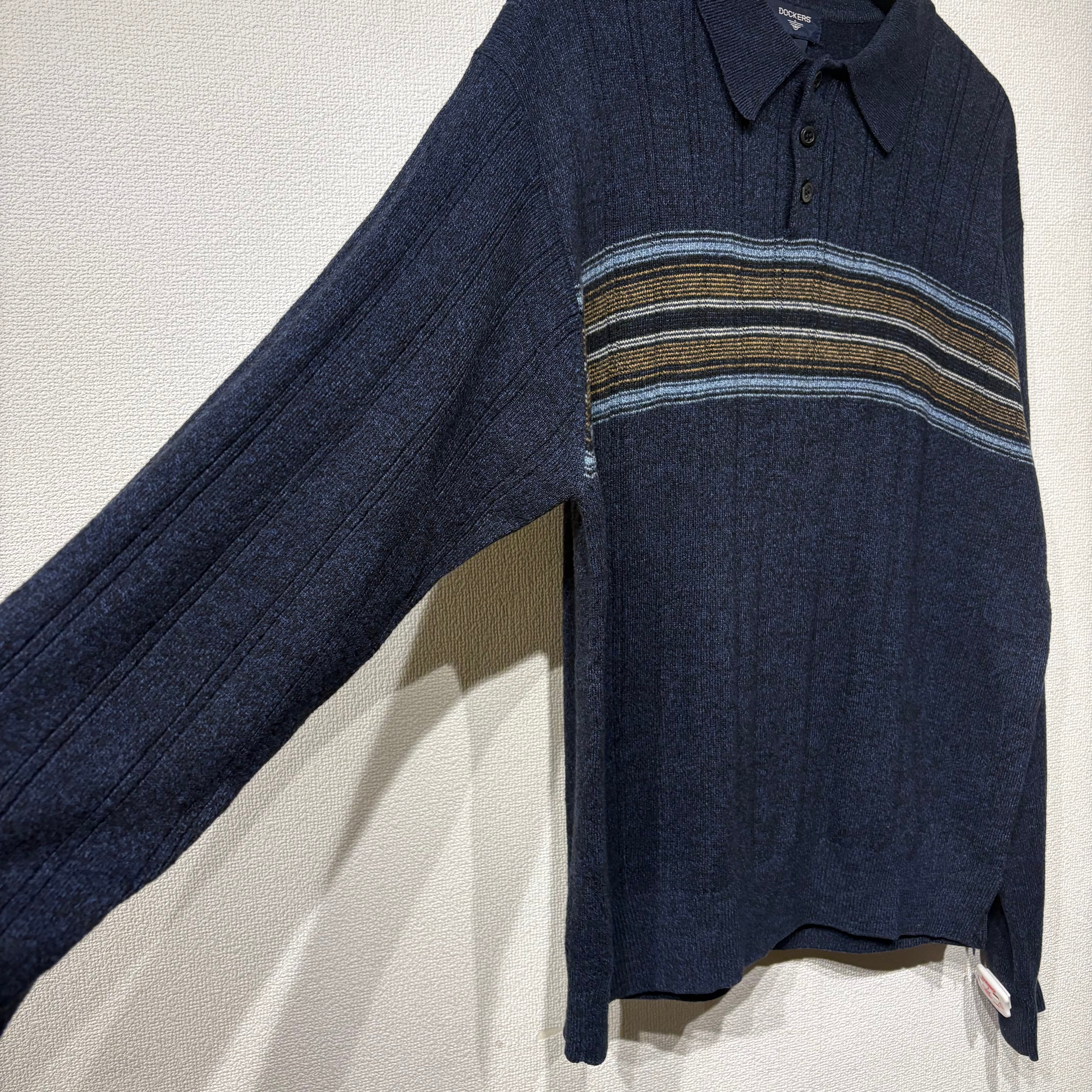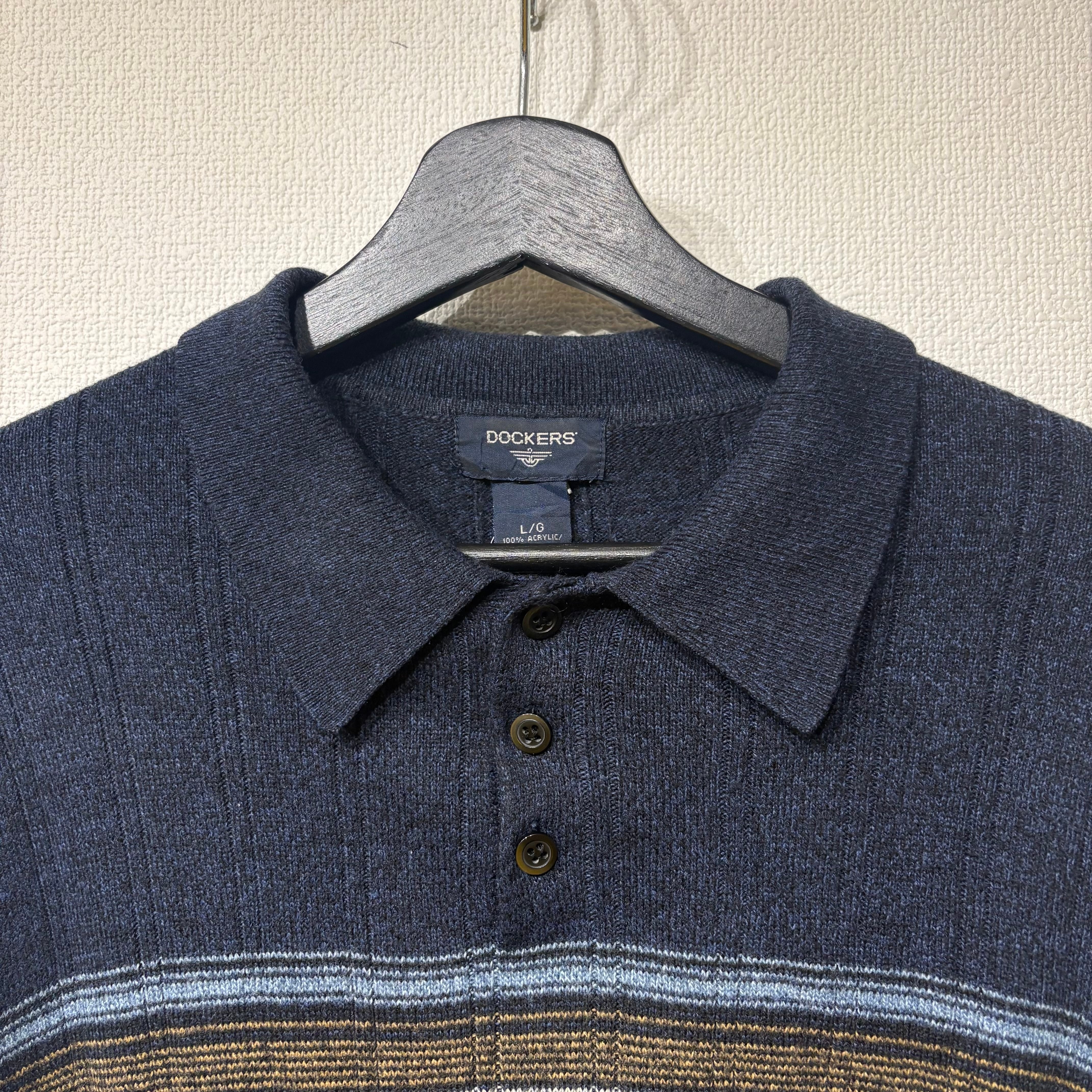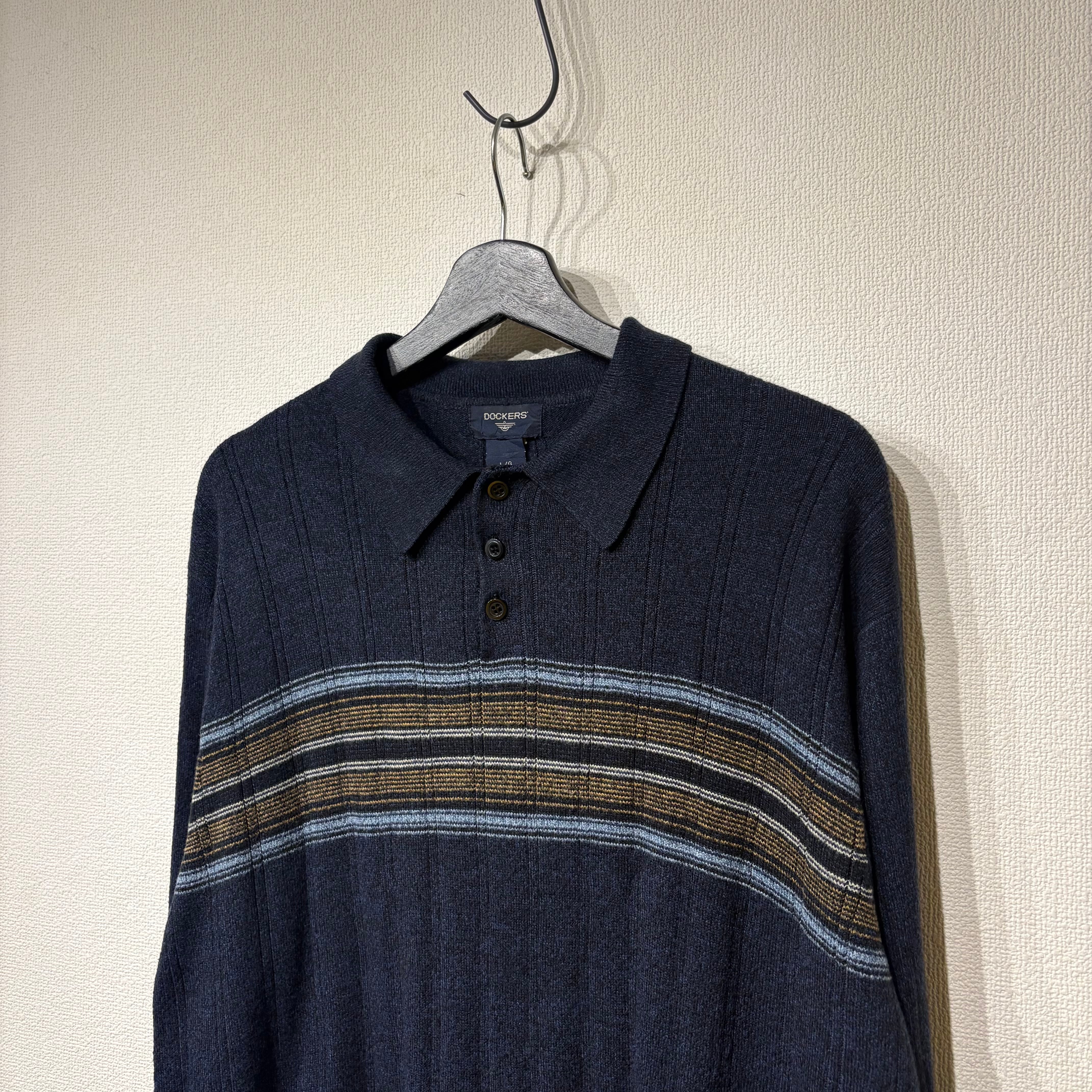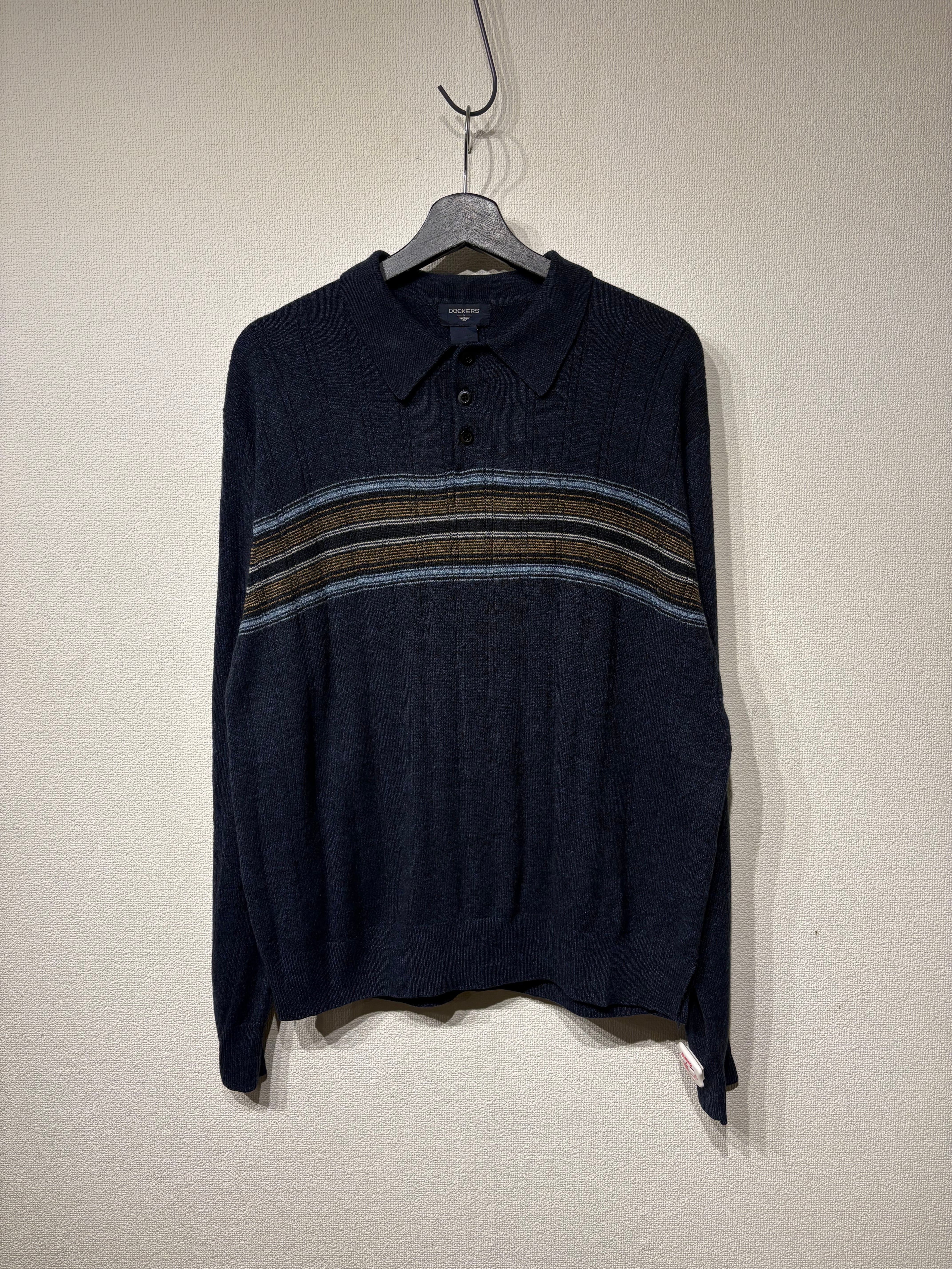 “DOCKERS” 90's navy base acryl design knit polo shirt