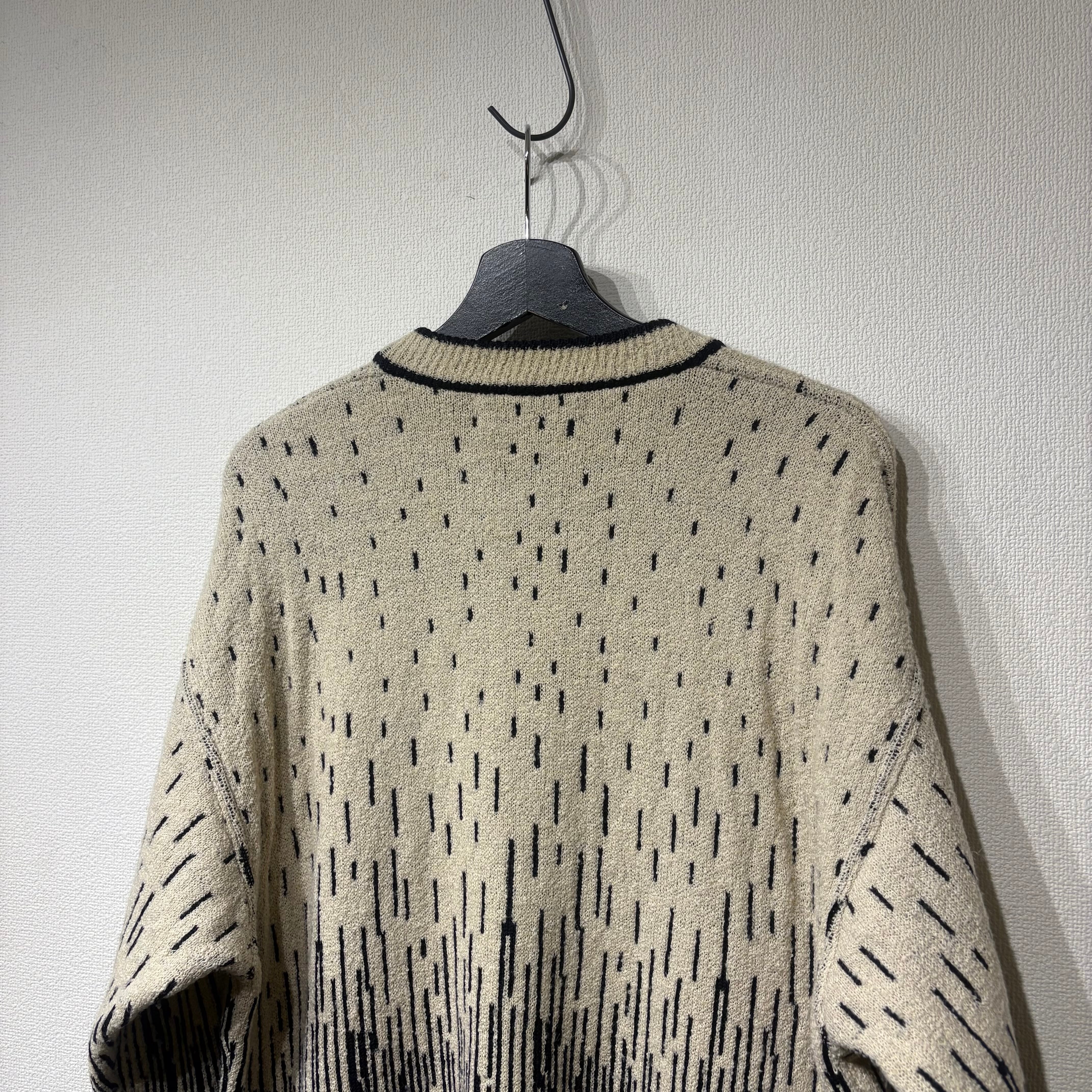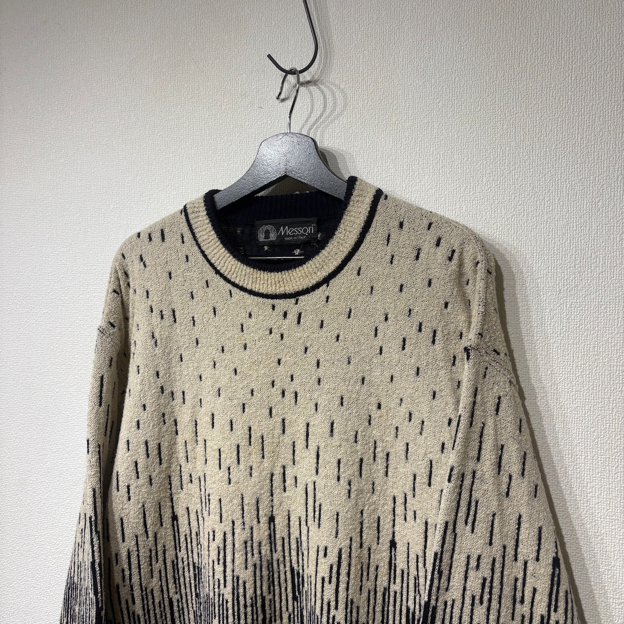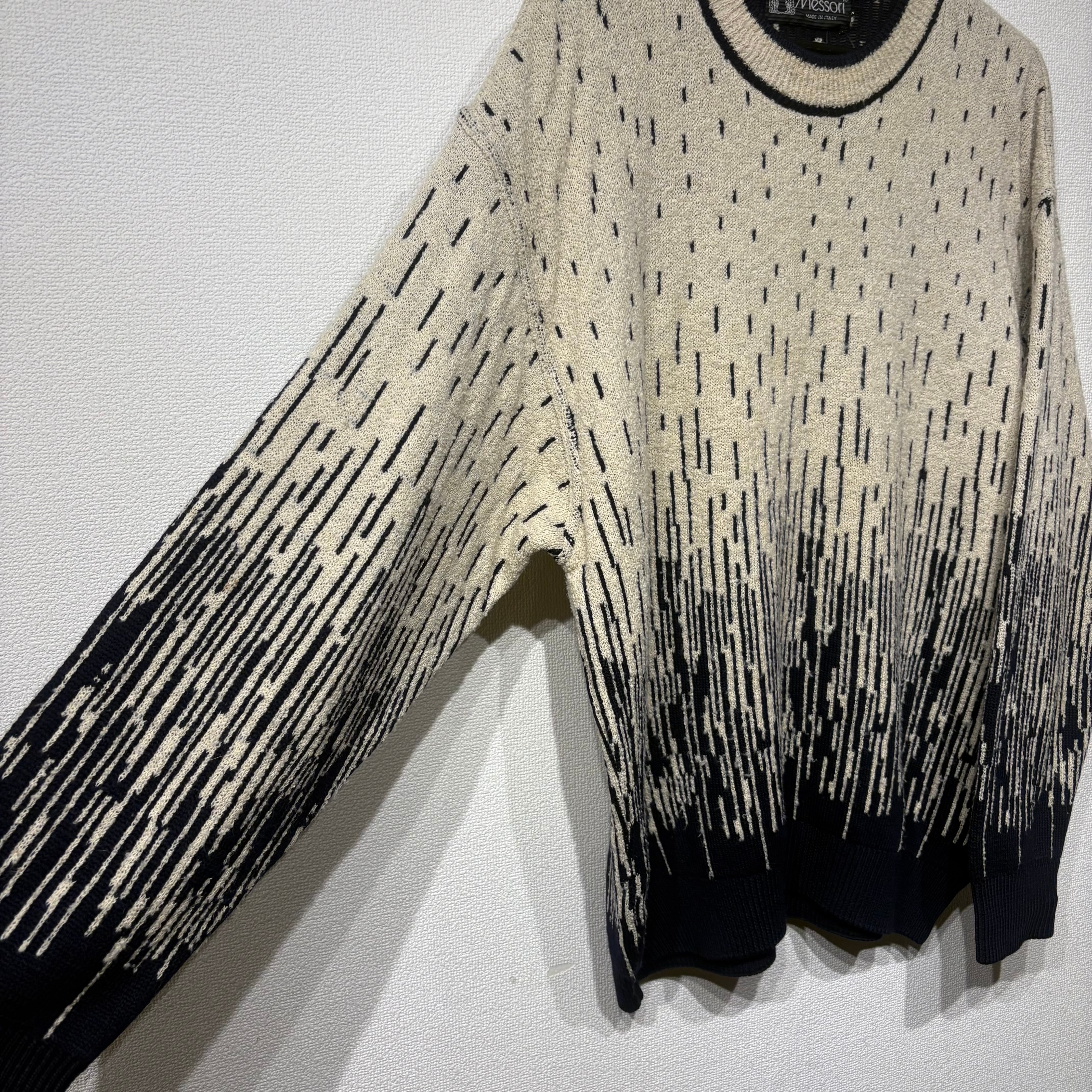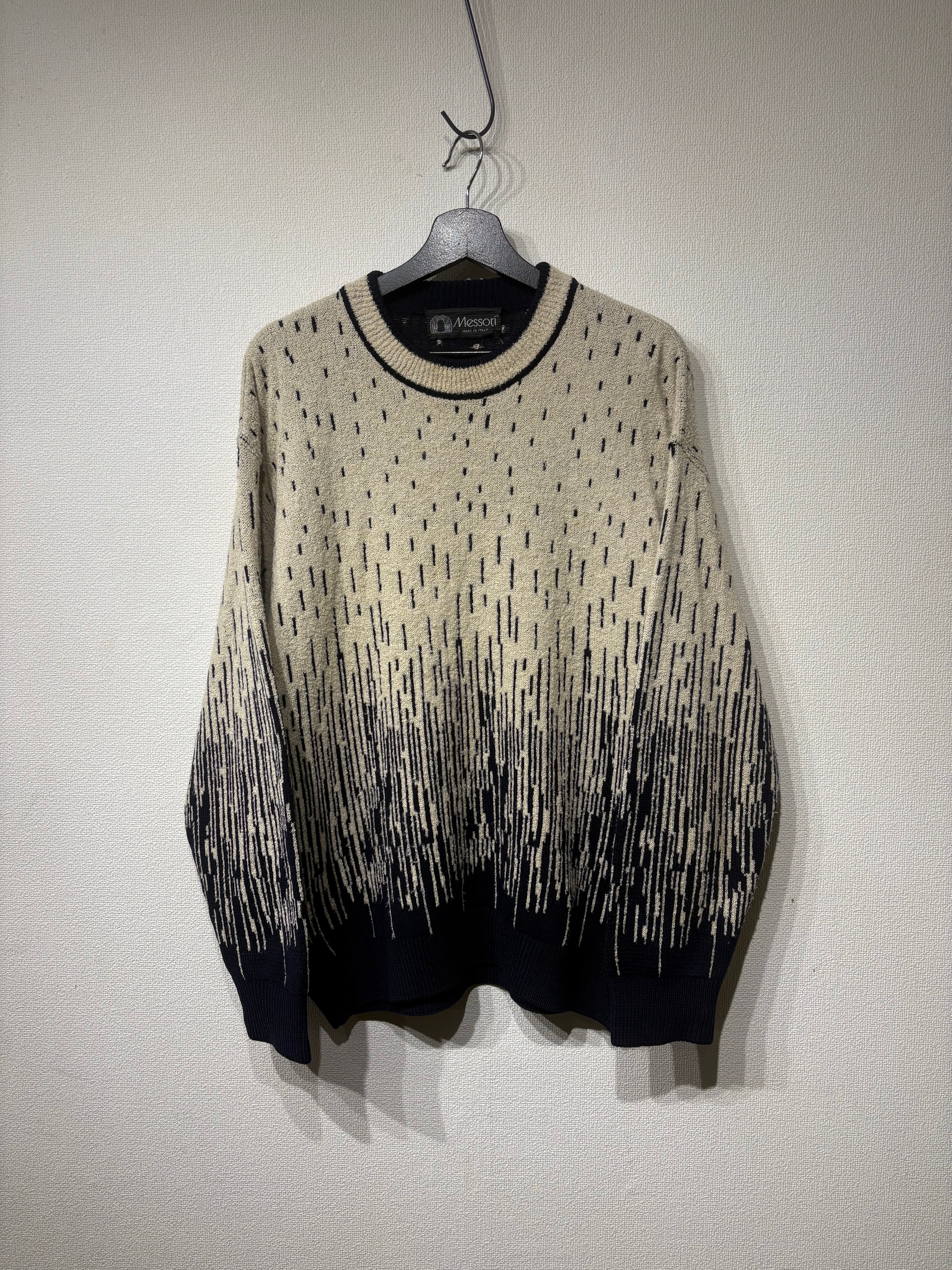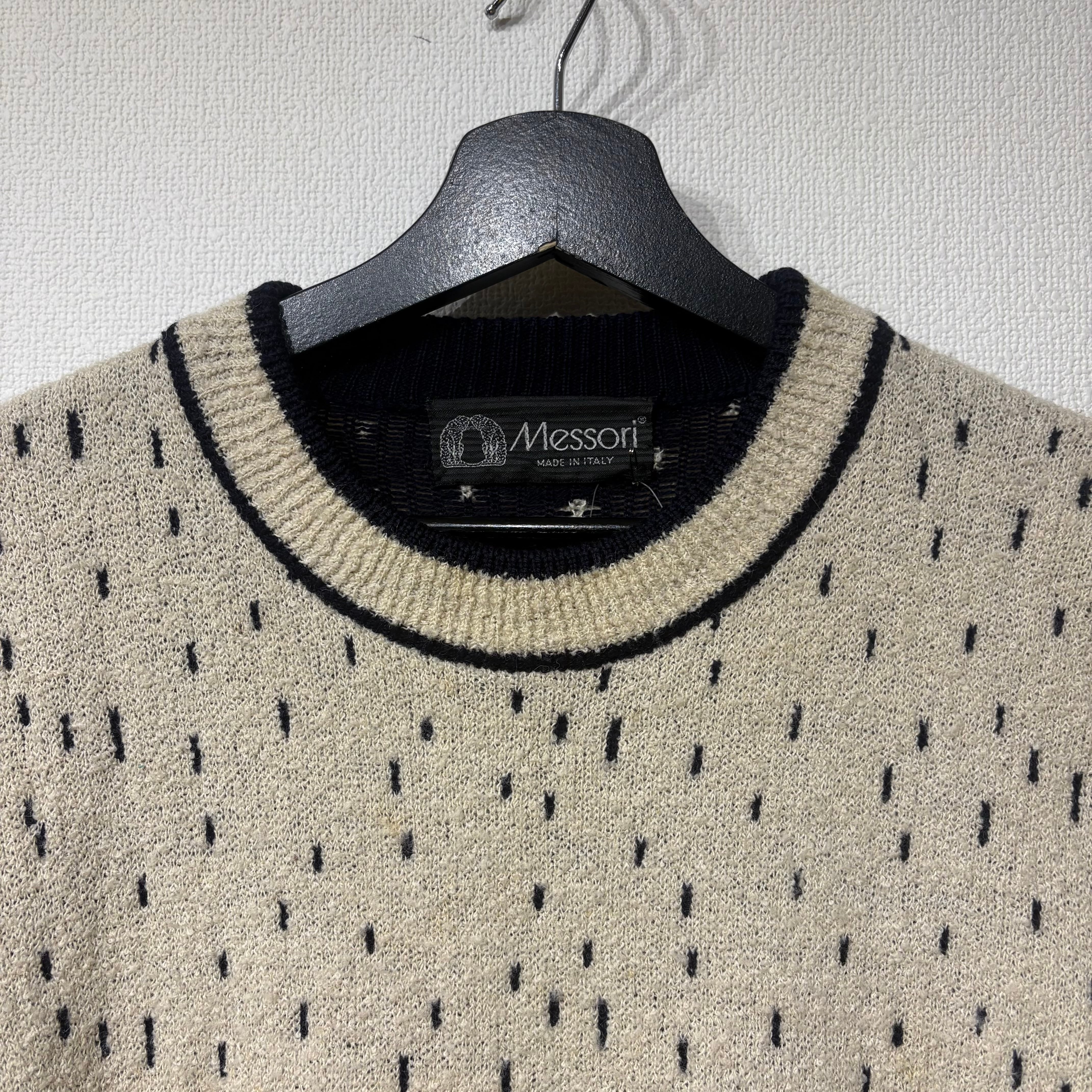 “Messori” 90's cream×black wool/silk all over pattern knit made in italy