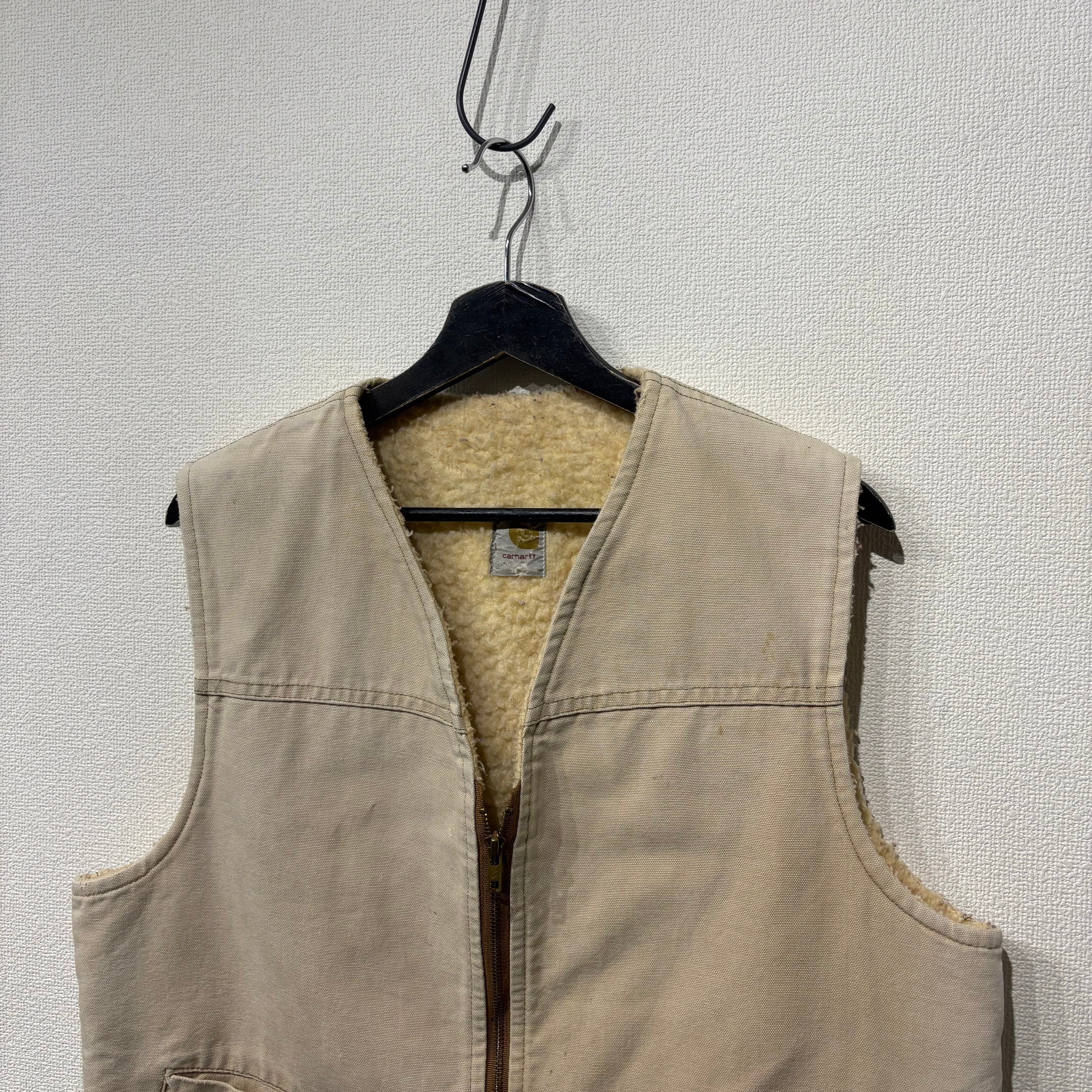 “Carhartt" 80's beige cotton duck boa liner zip vest made in U.S.A