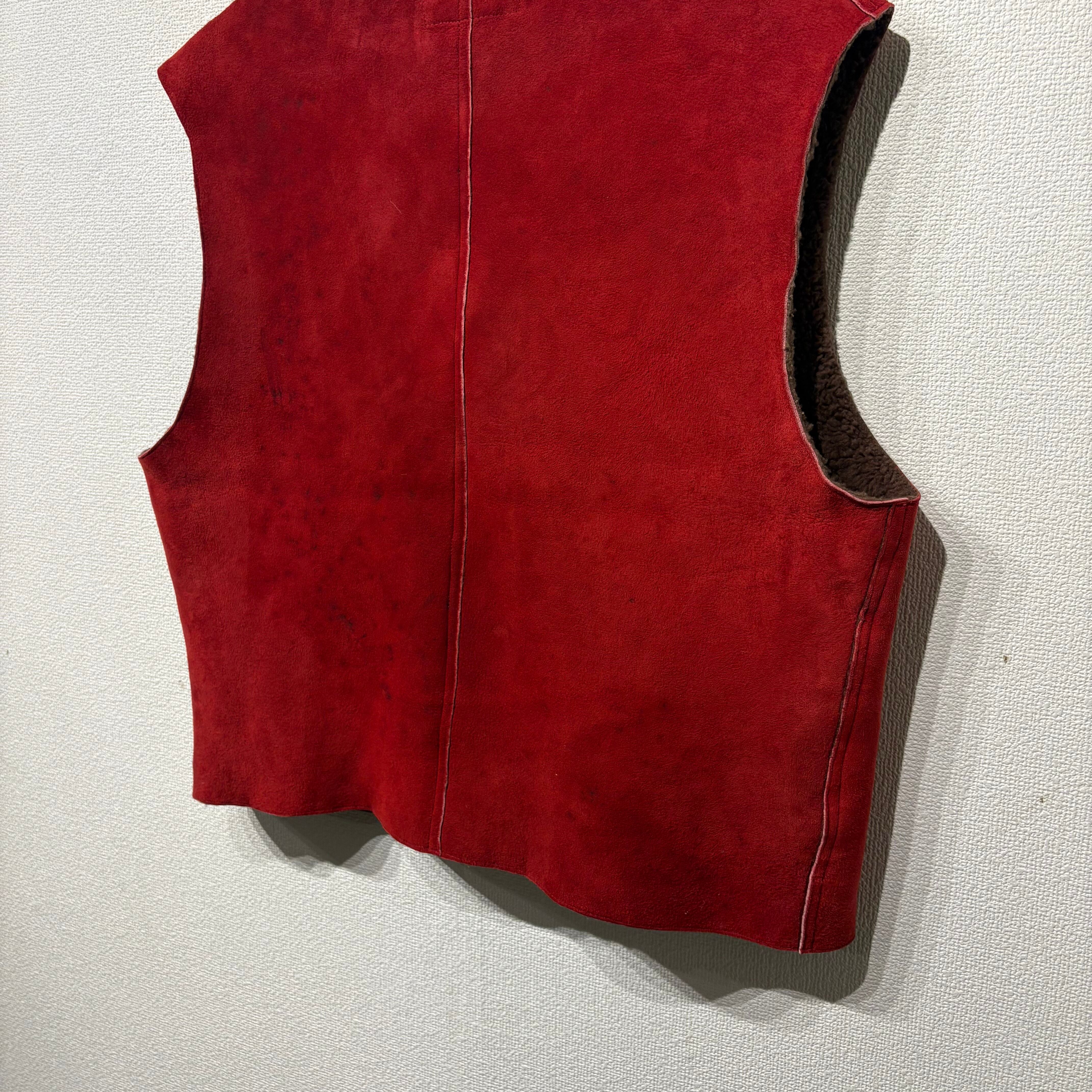 “POLO by Ralph Lauren" 90's red sheep skin leather zip-up mouton vest