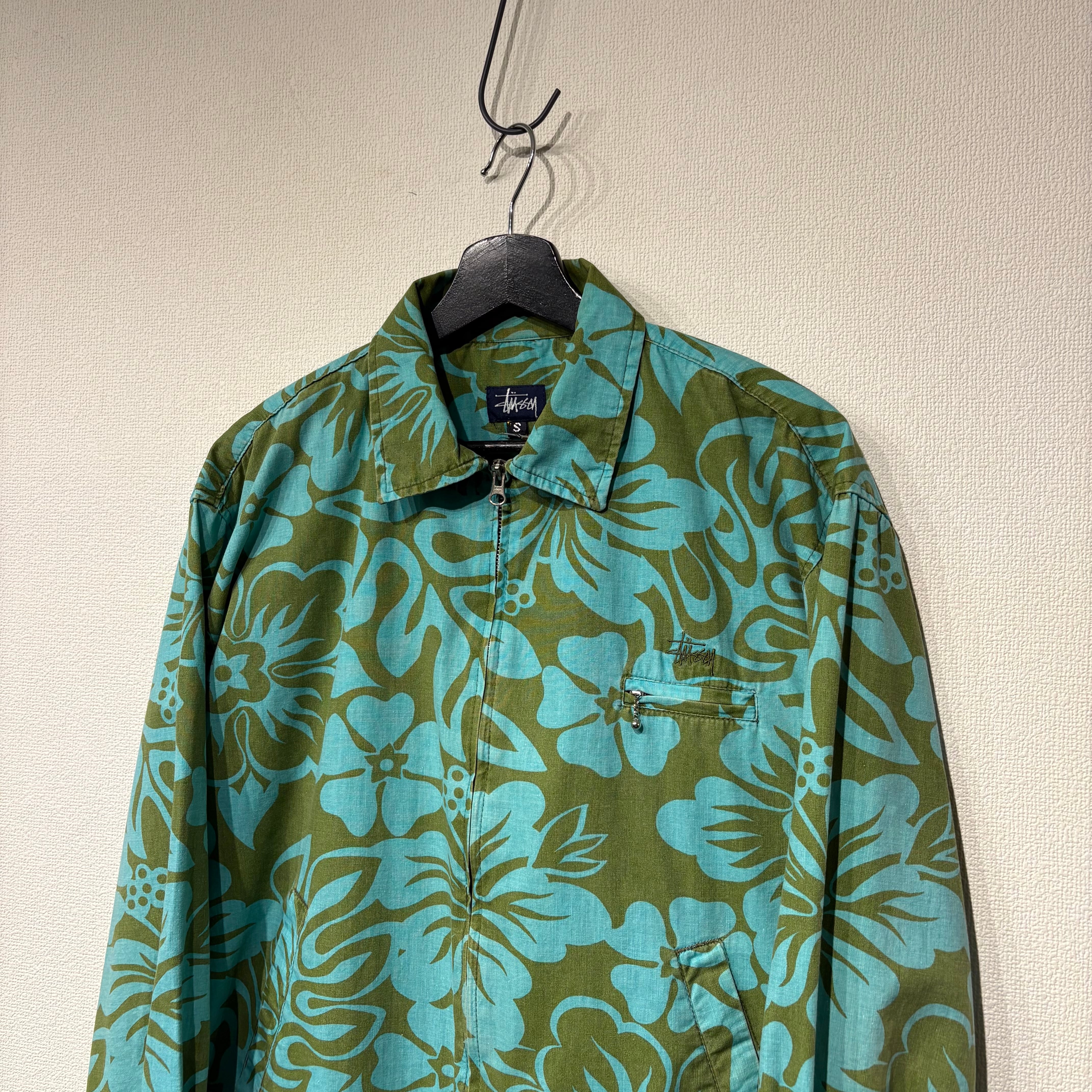 “STUSSY" 90's blue×olive cotton botanical pattern harrington jacket made in U.S.A
