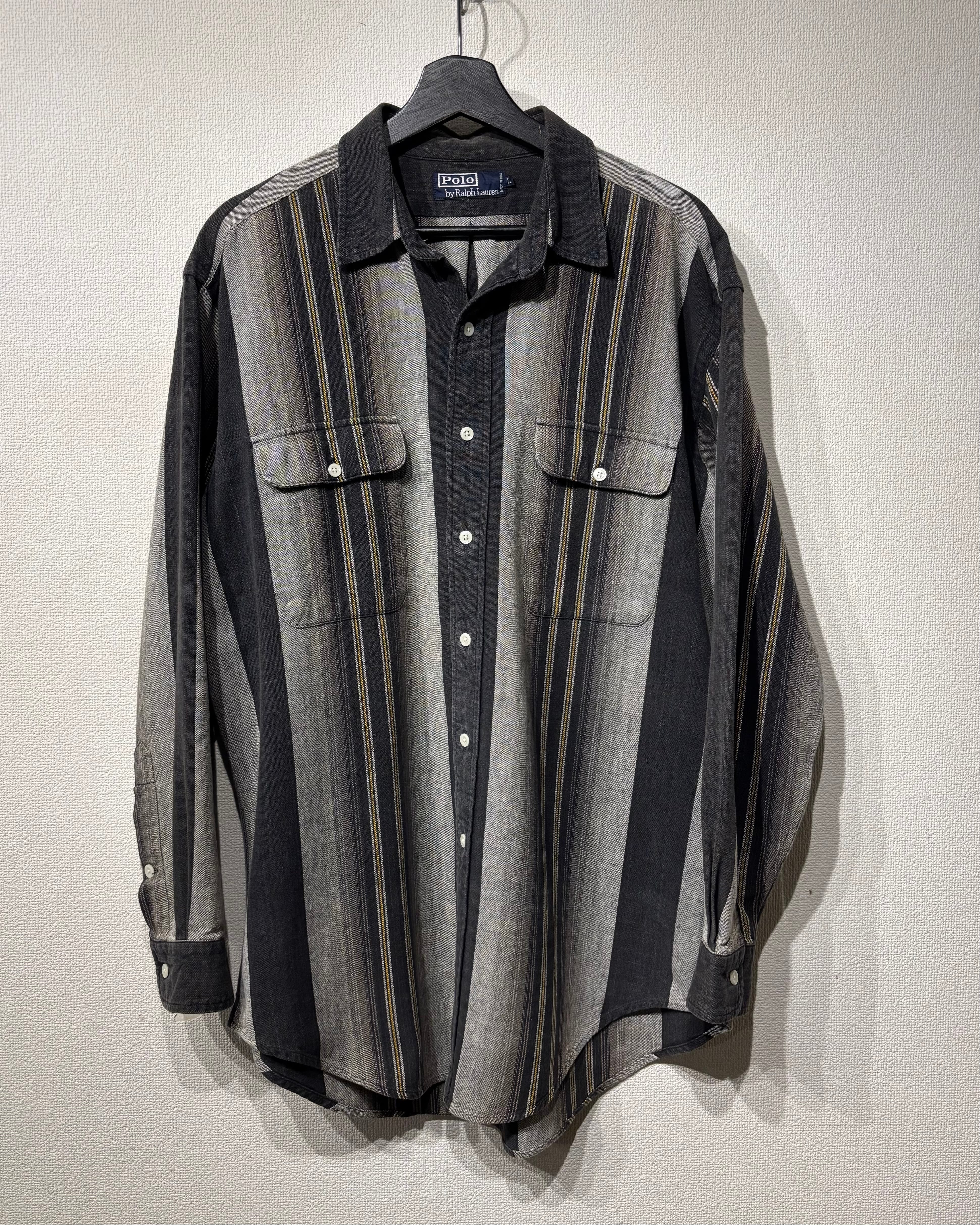 “Polo by Ralph Lauren" 90's gray base cotton stripe pattern L/S shirt