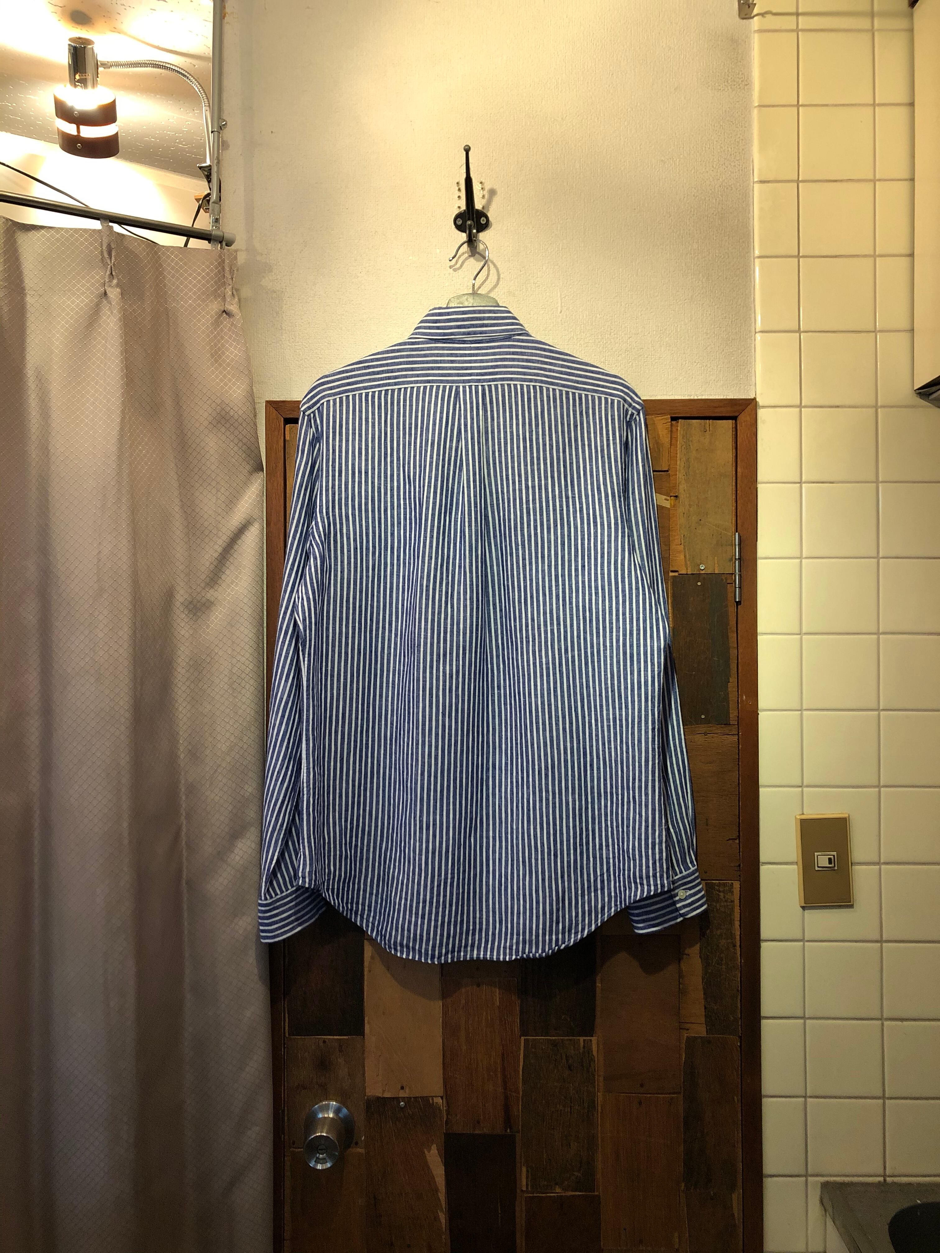 “Ralph Lauren” blue×white linen stripe pattern L/S BD shirt