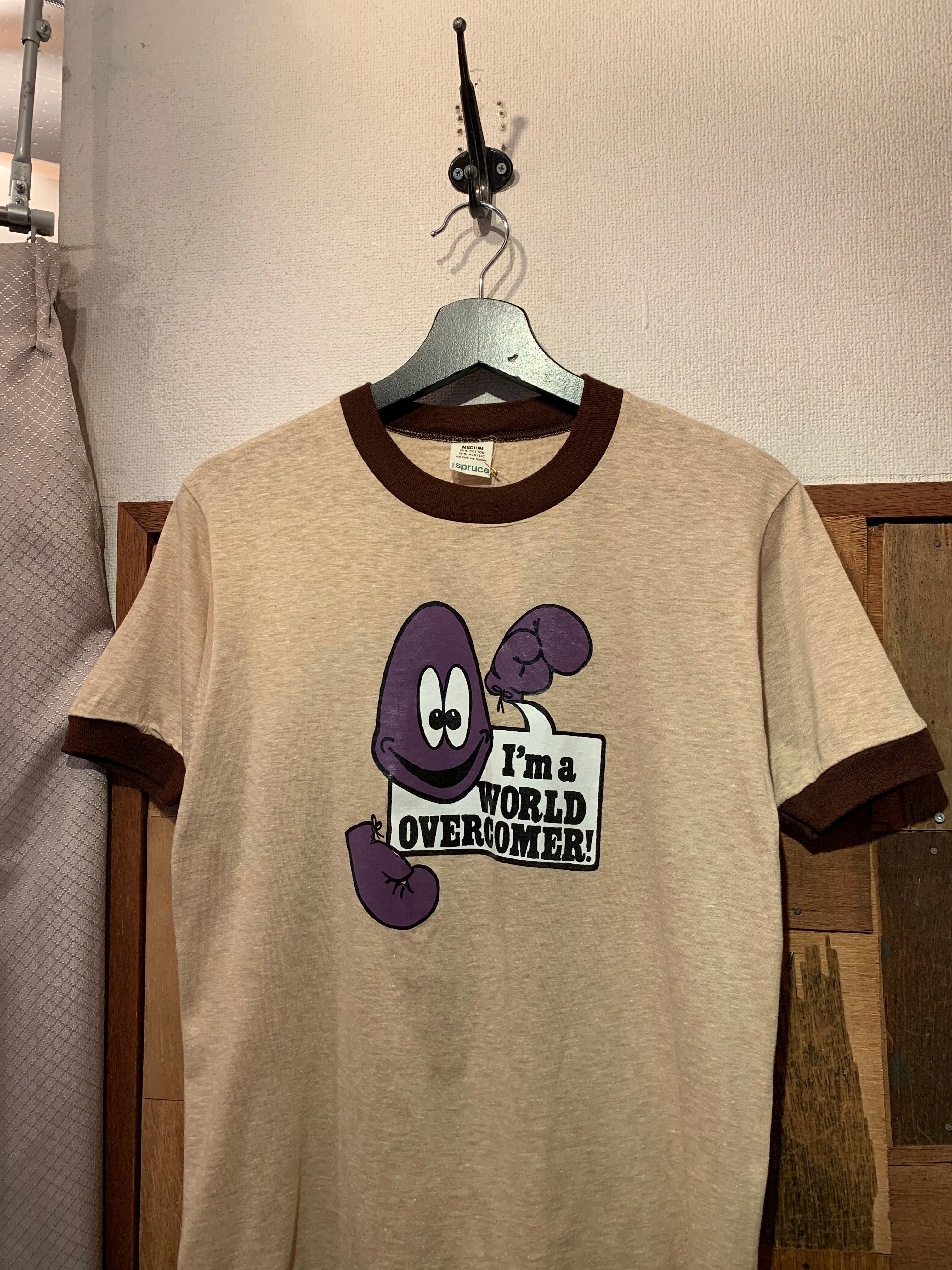 “spruce” 80’s light brown×brown printed S/S ringer T-shirt