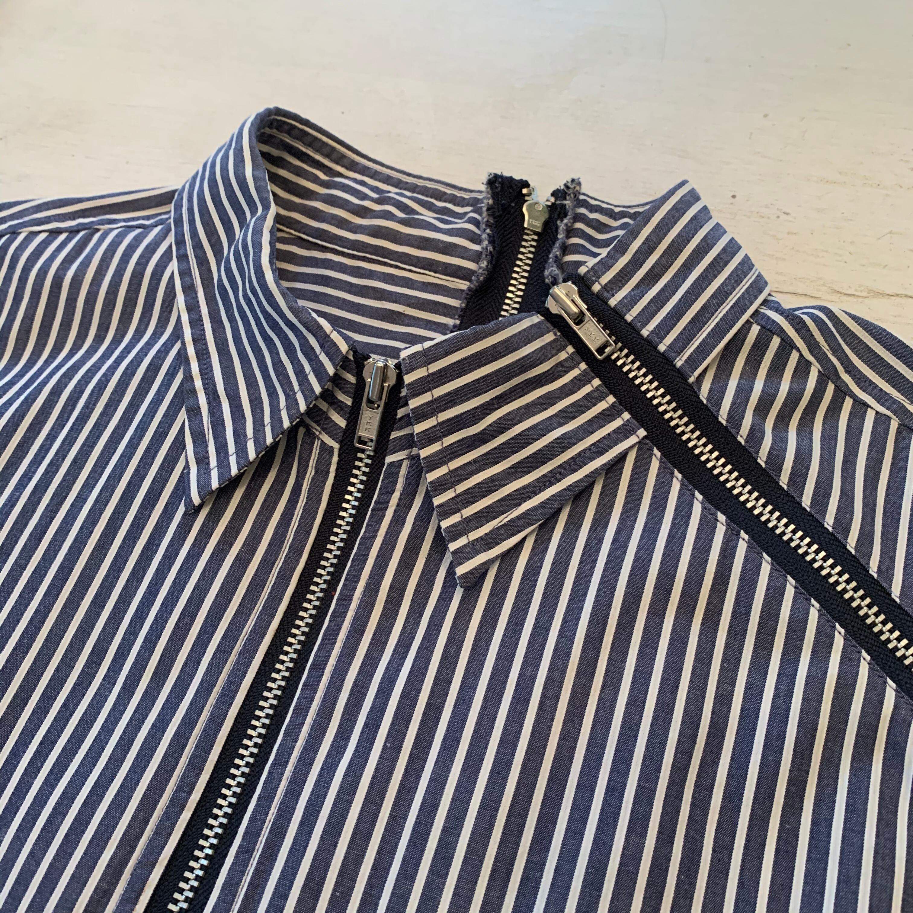 “PPFM” 00’s blue×white zip design stripe pattern S/S shirt