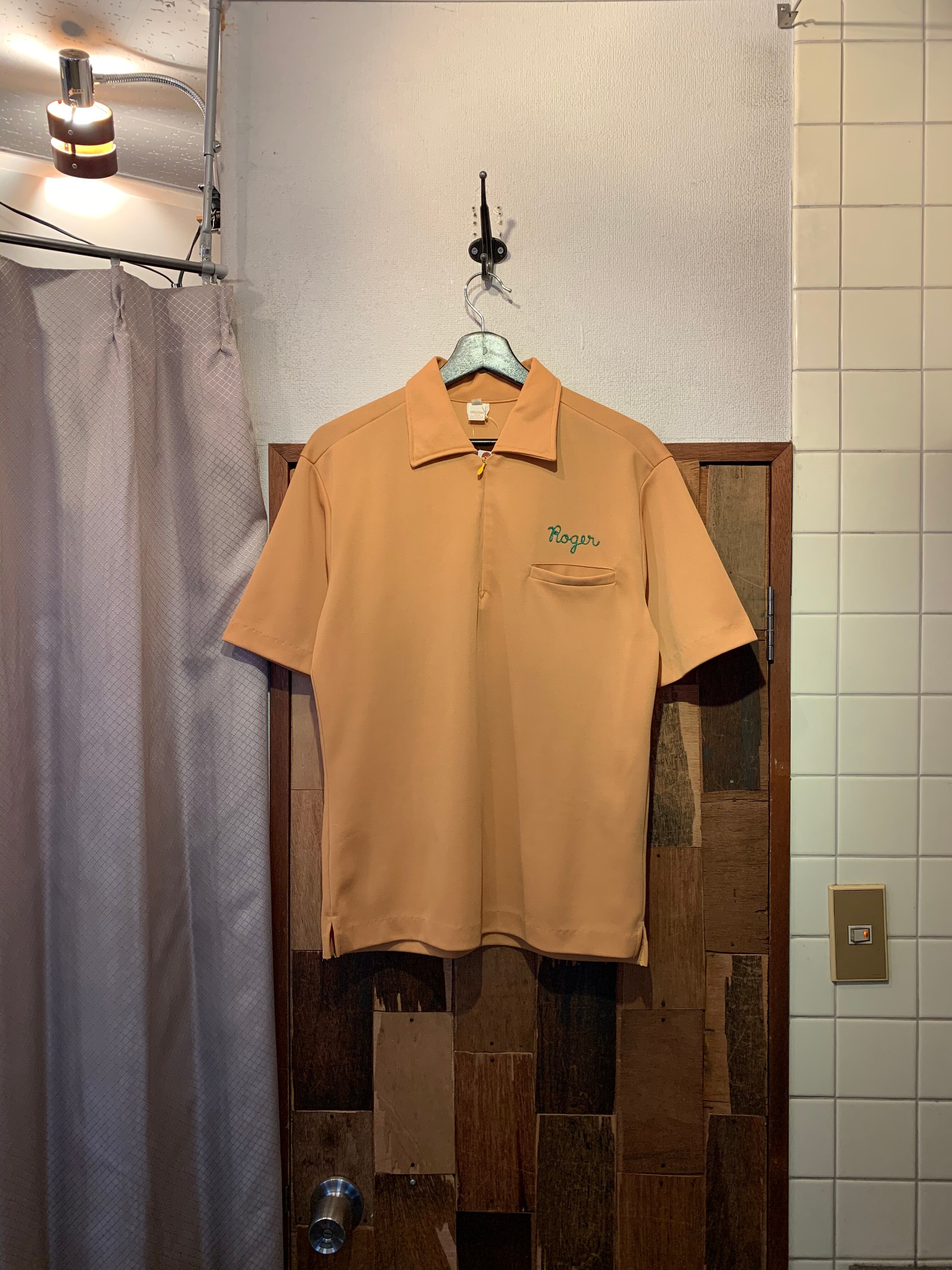 “ANGELTOWN” 70’s vintage フリーメイソン「シュライナー」mustard embroidery design half-zip polo shirt