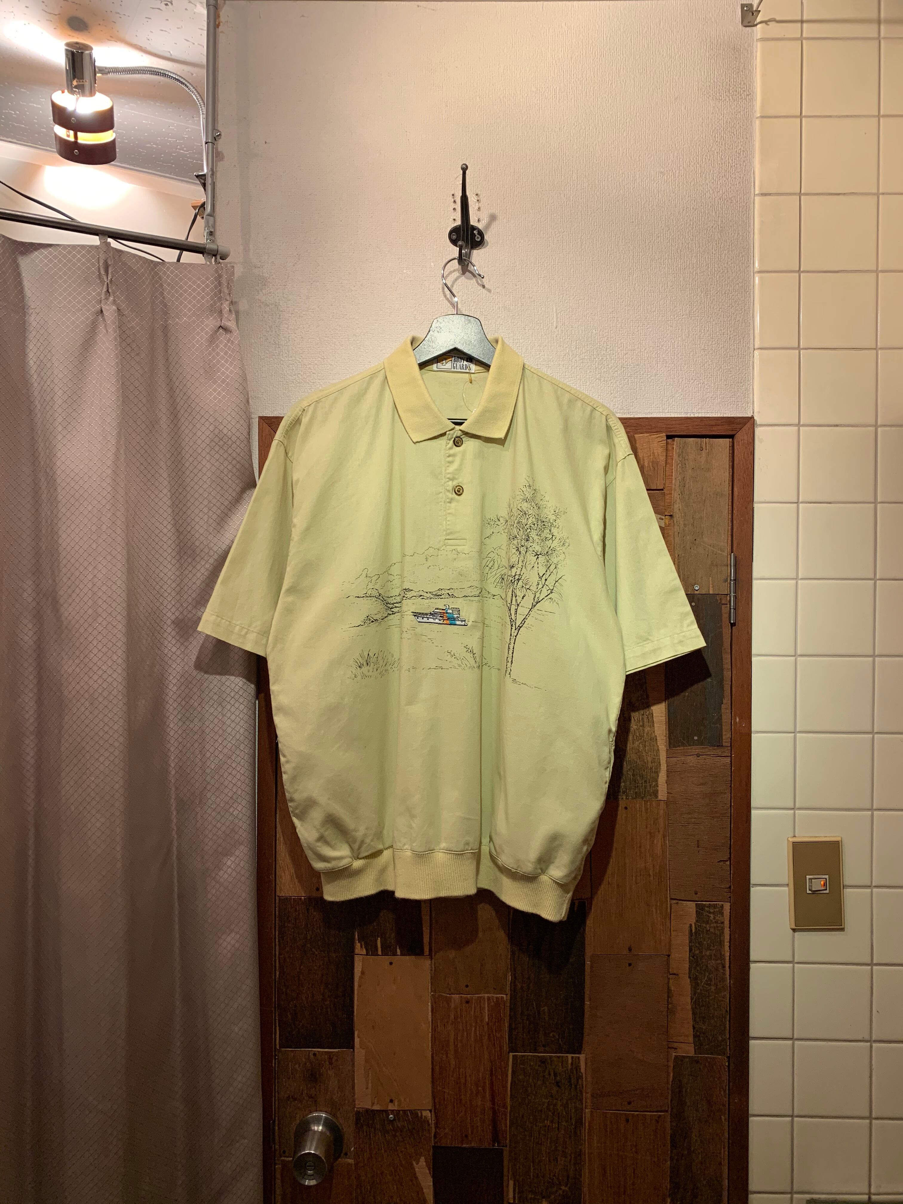“BODY GUARD’S” 80’s~90’s pale yellow printed&embroidery design S/S pullover shirt