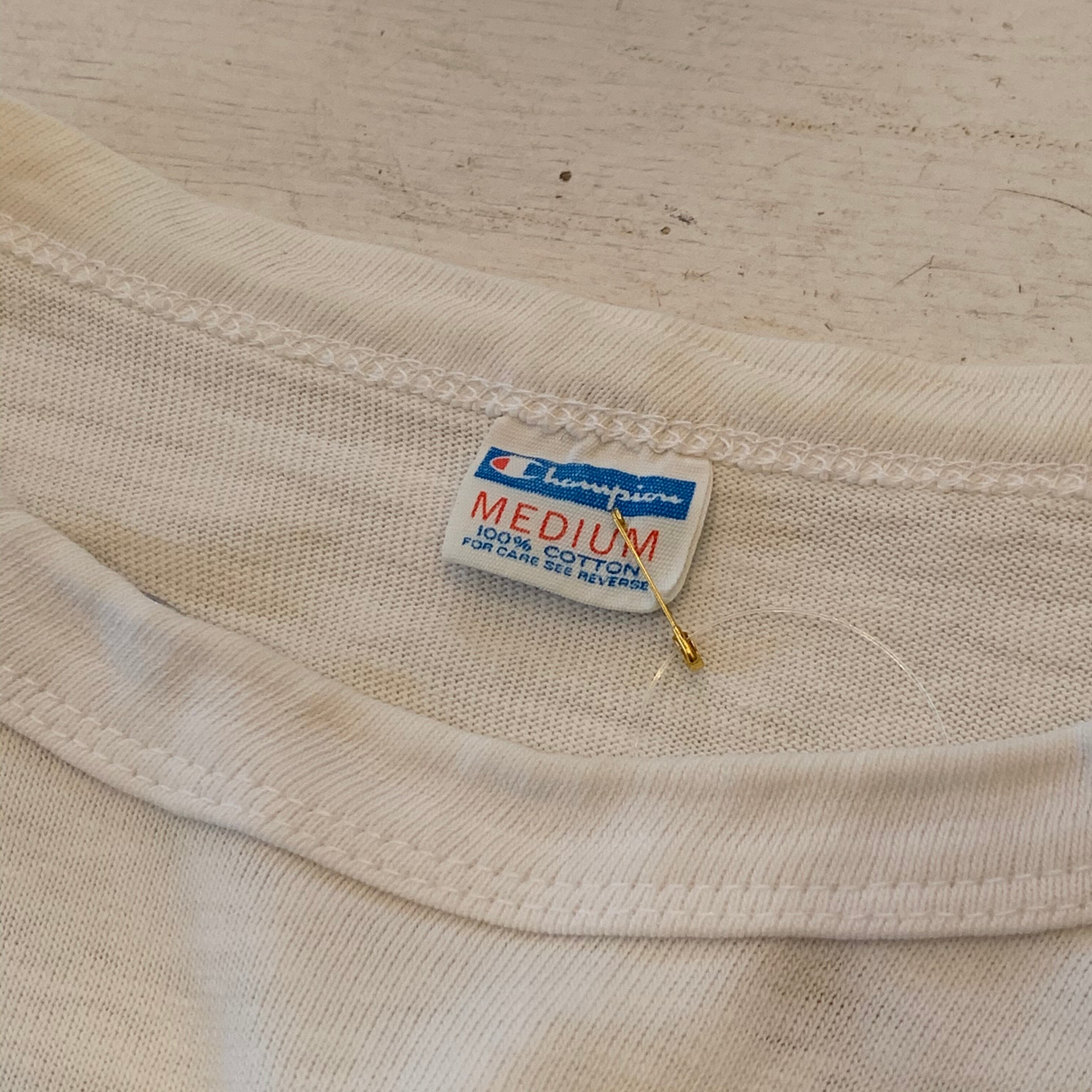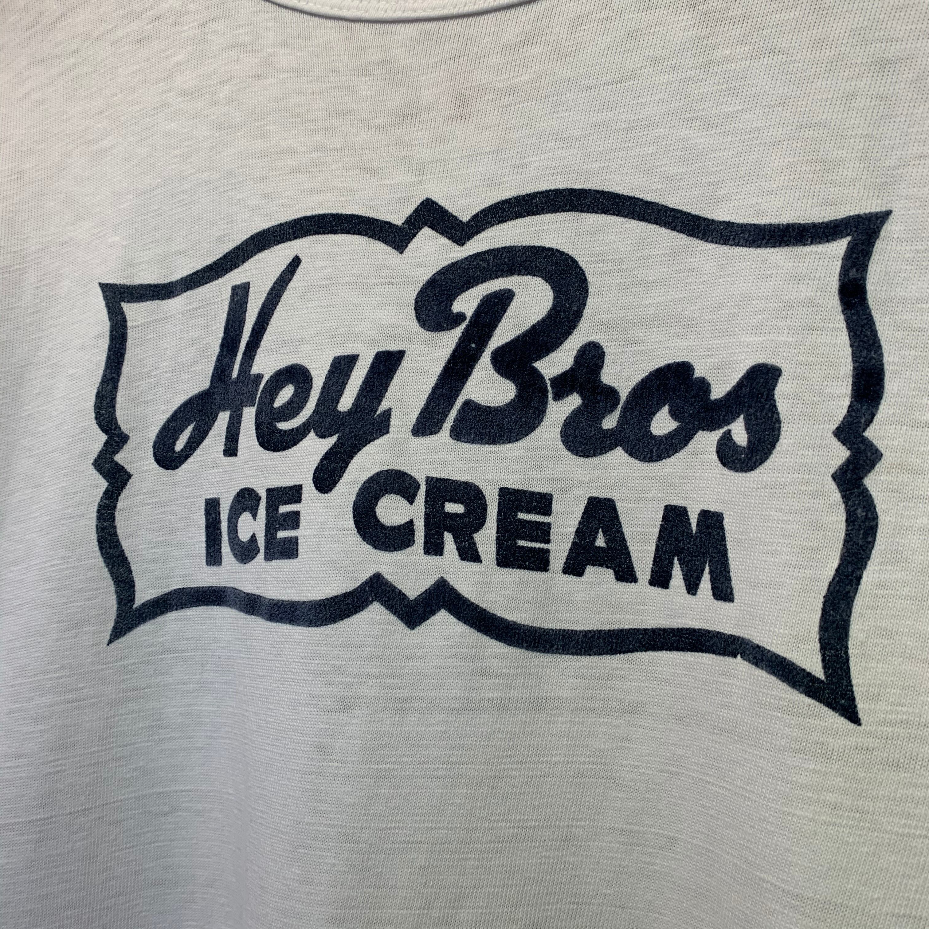 “Champion” 70’s vintage「Hey Bros ICE CREAM」white flocky printed S/S T-shirt