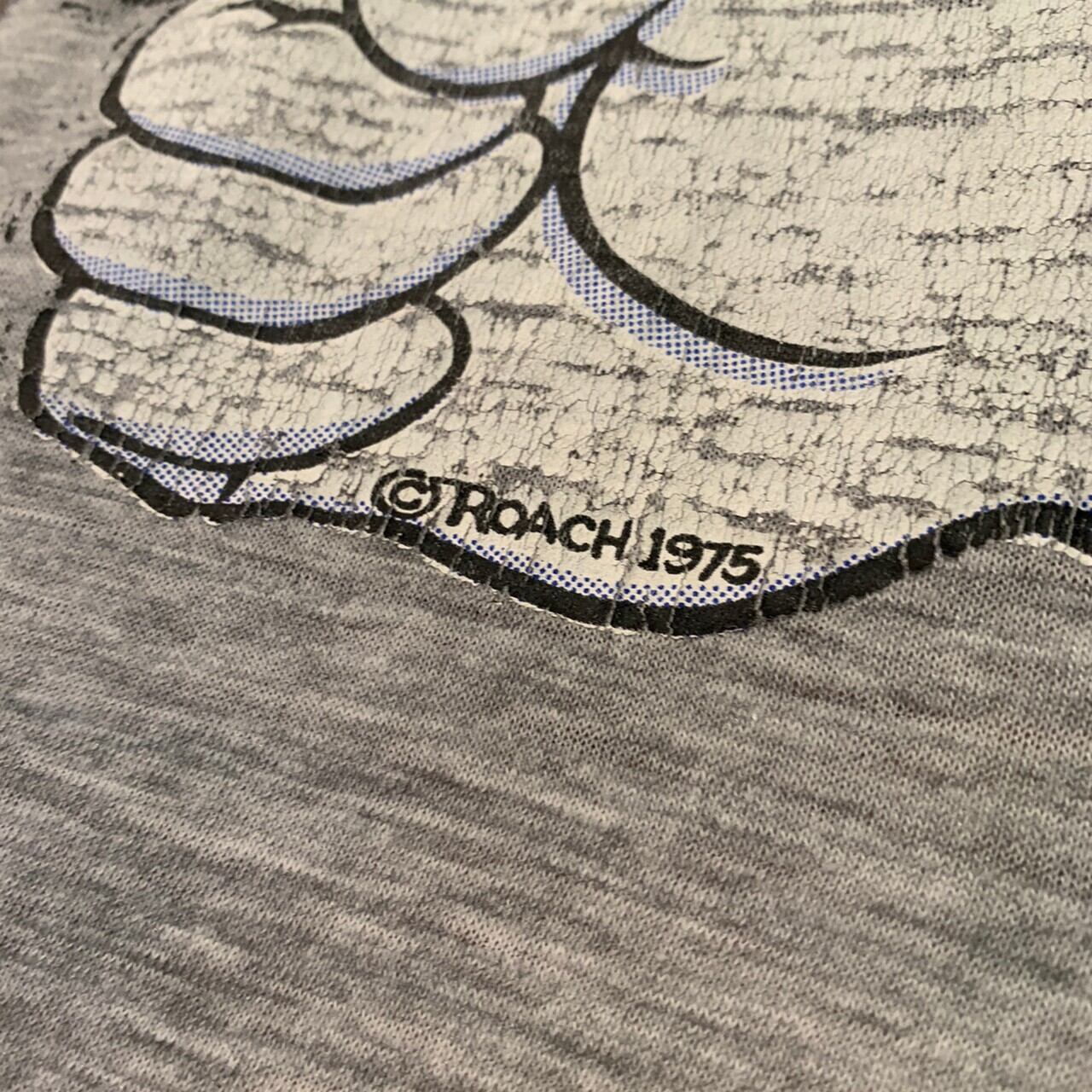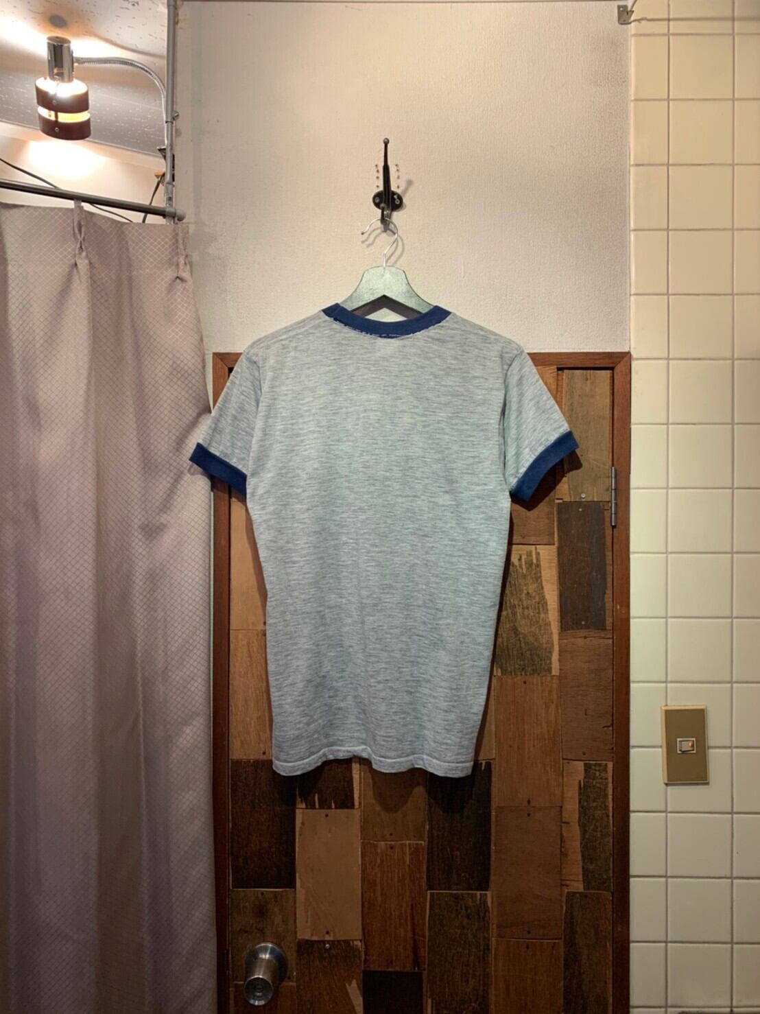 “BODY WEAR” Gray×navy cotton/poly printed S/S ringer T-shirt