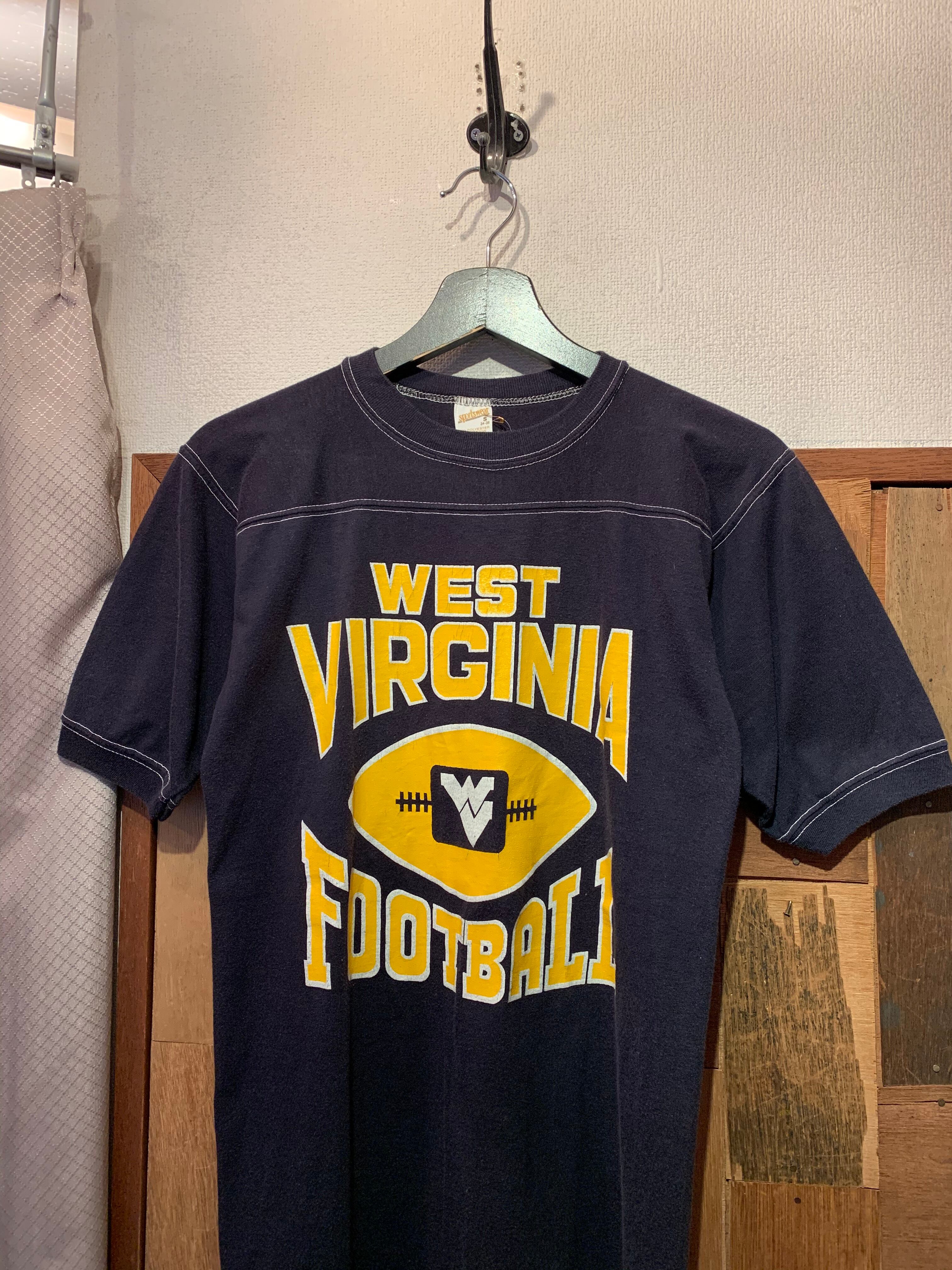 “sportswear” 70’s~80’s dark navy×yellow printed S/S football T-shirt