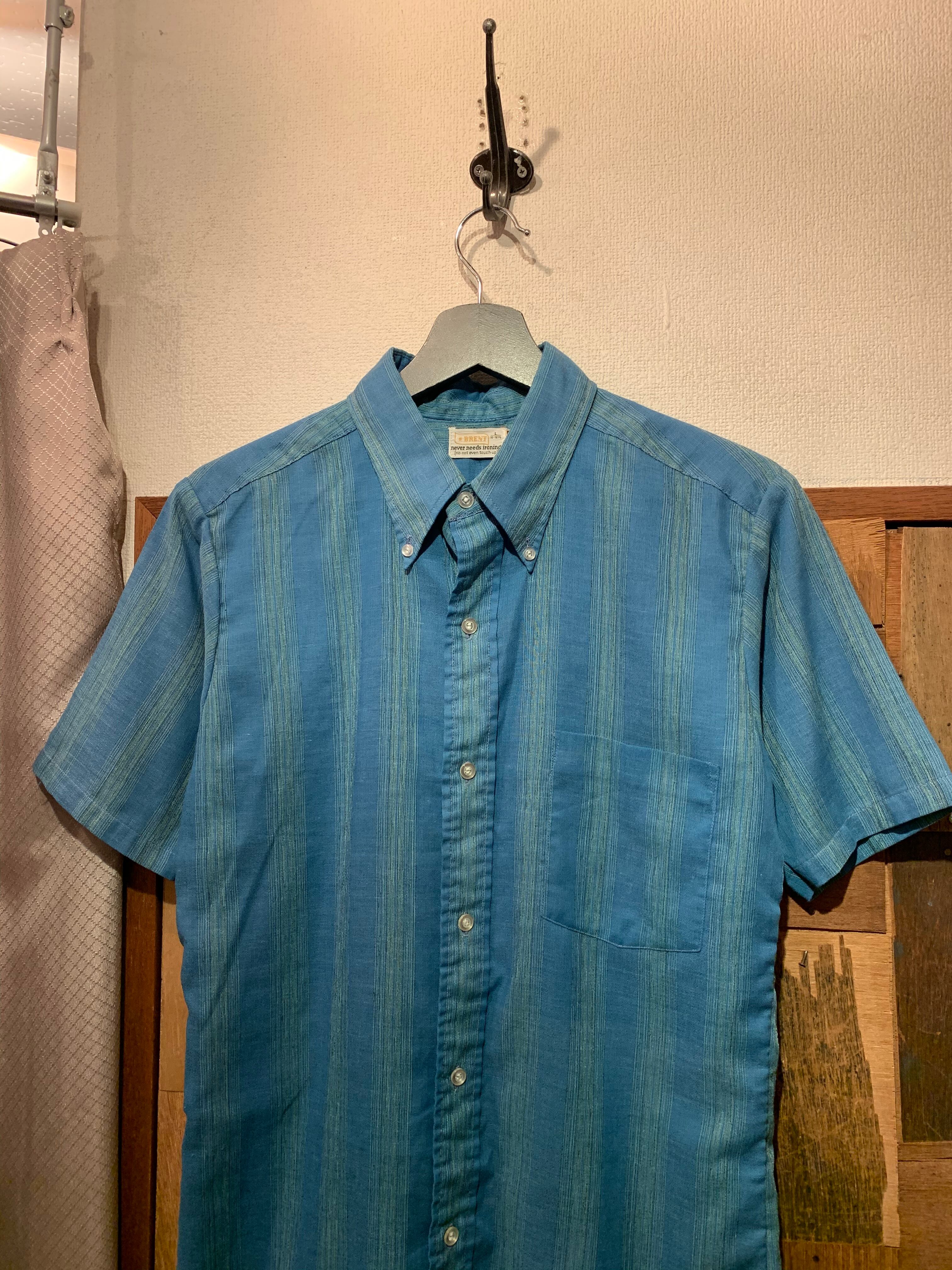 “BRENT” 60’s vintage blue stripe pattern S/S BD shirt