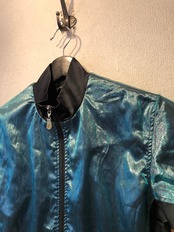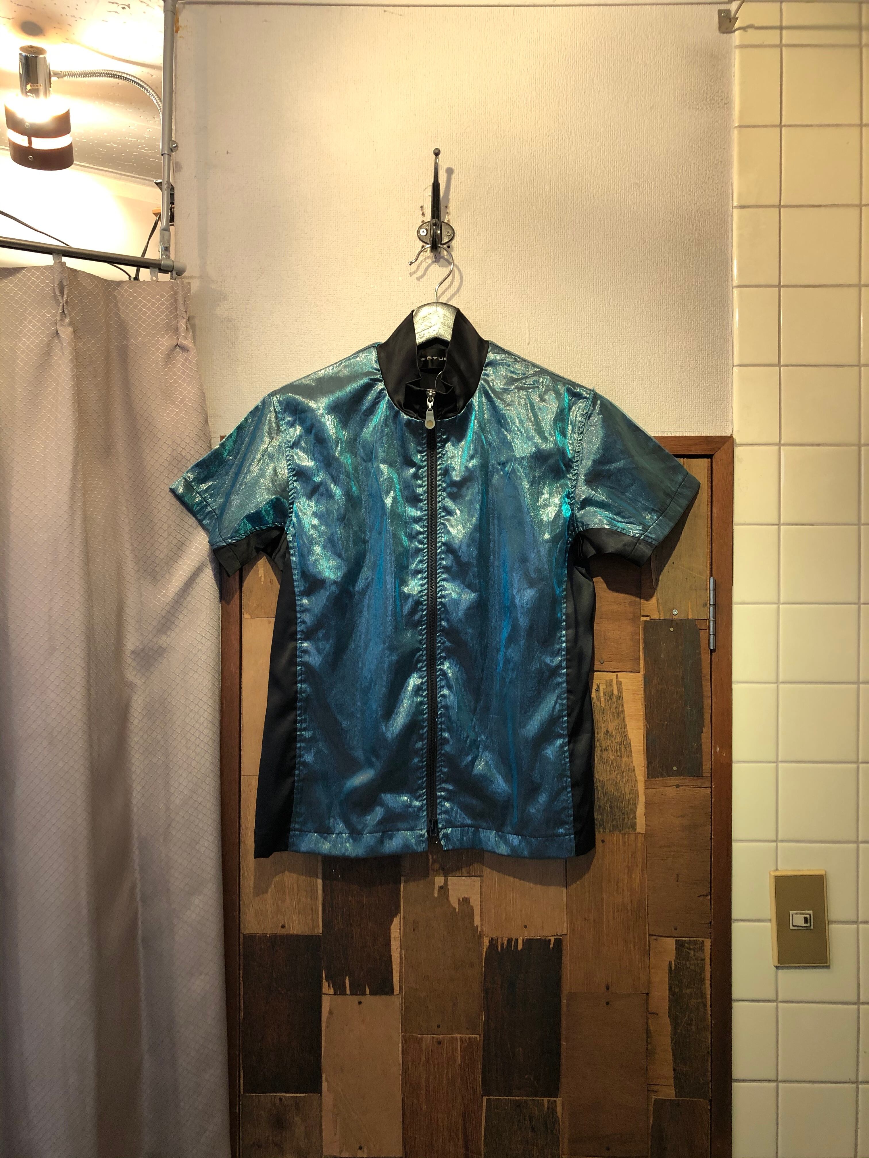 “FOTUS” Emerald green poly/nylon switch design S/S zip up shirt