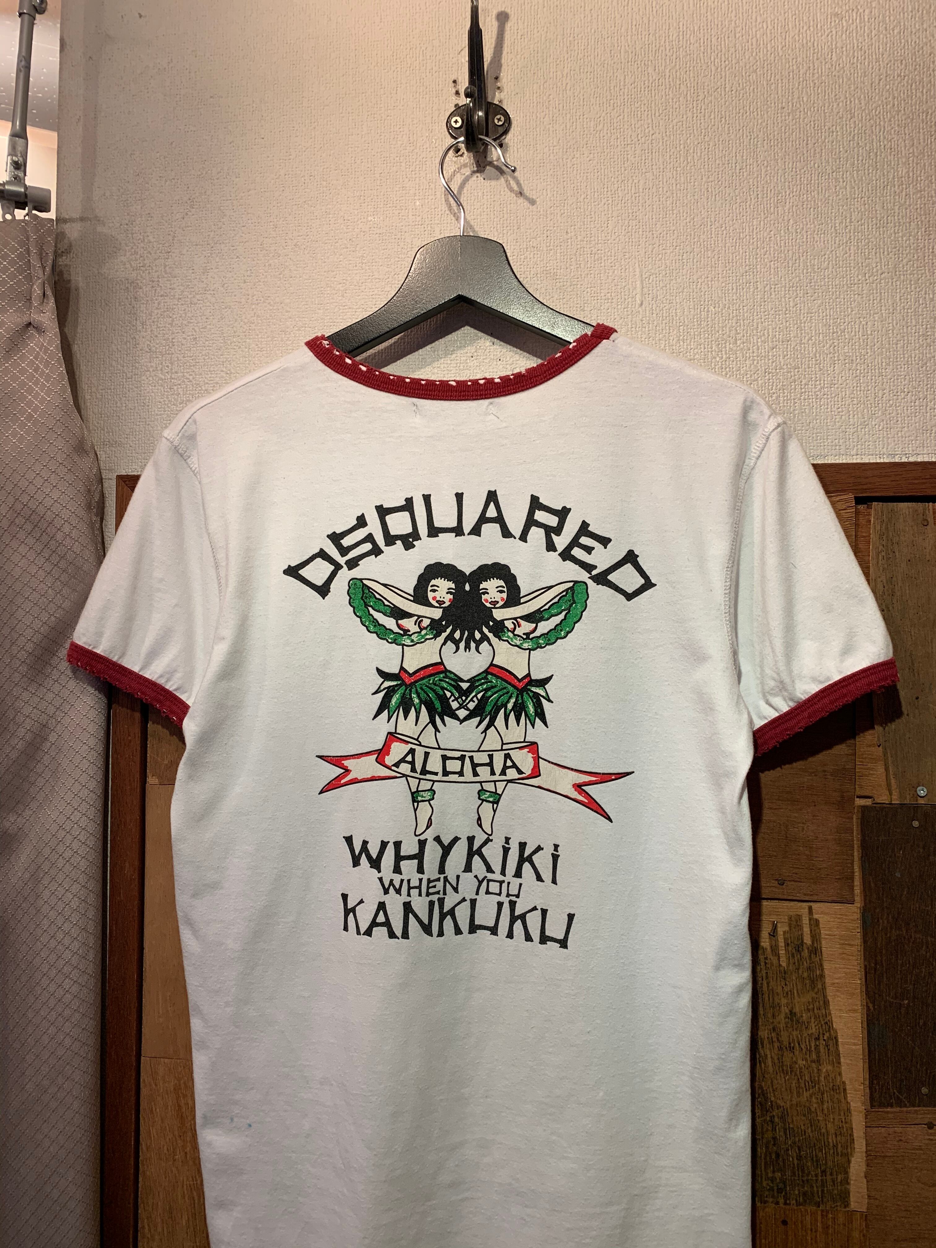 “DSQUARED” white×red cotton printed S/S ringer T-shirt
