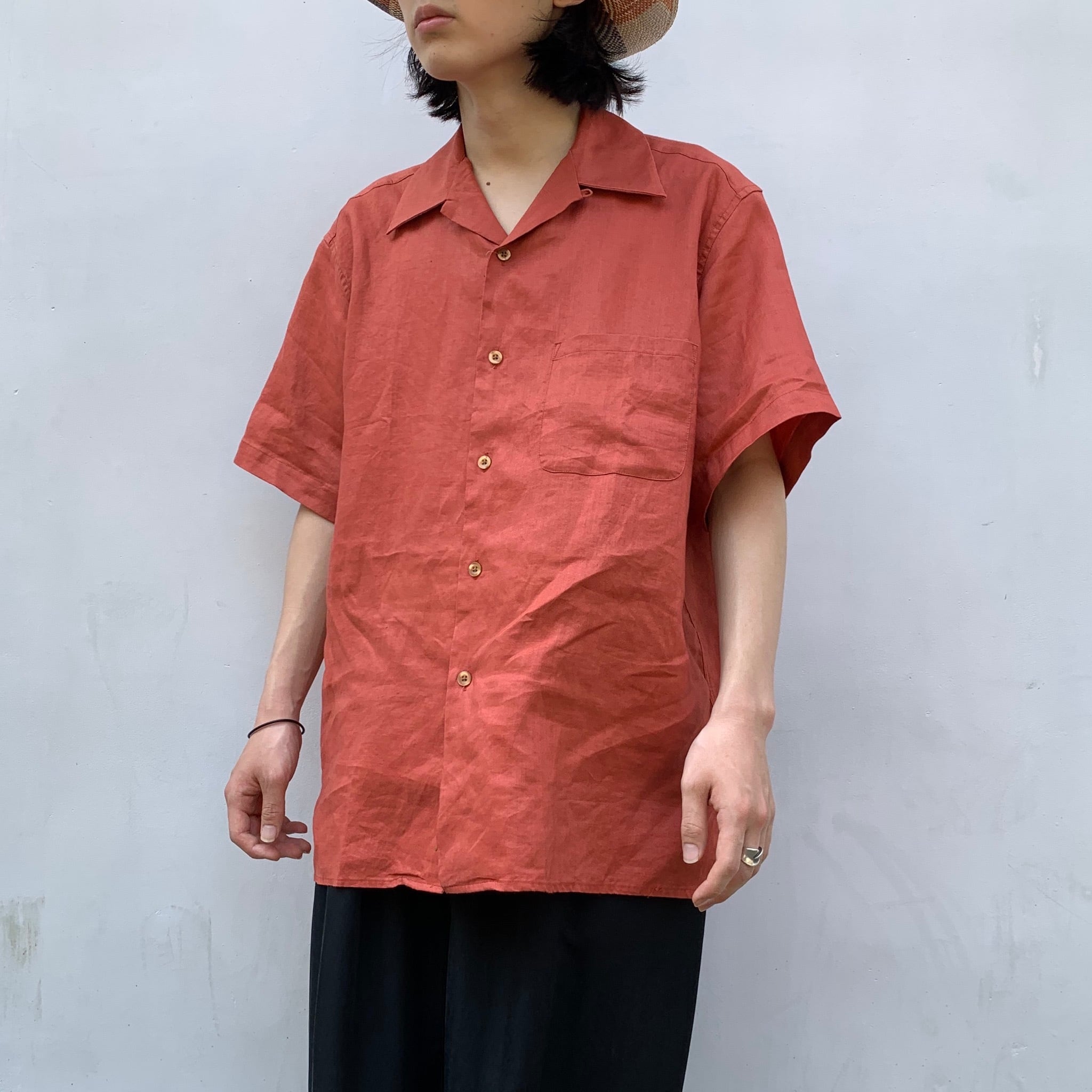 “GAUDENT” Vermilion linen design S/S open collar shirt