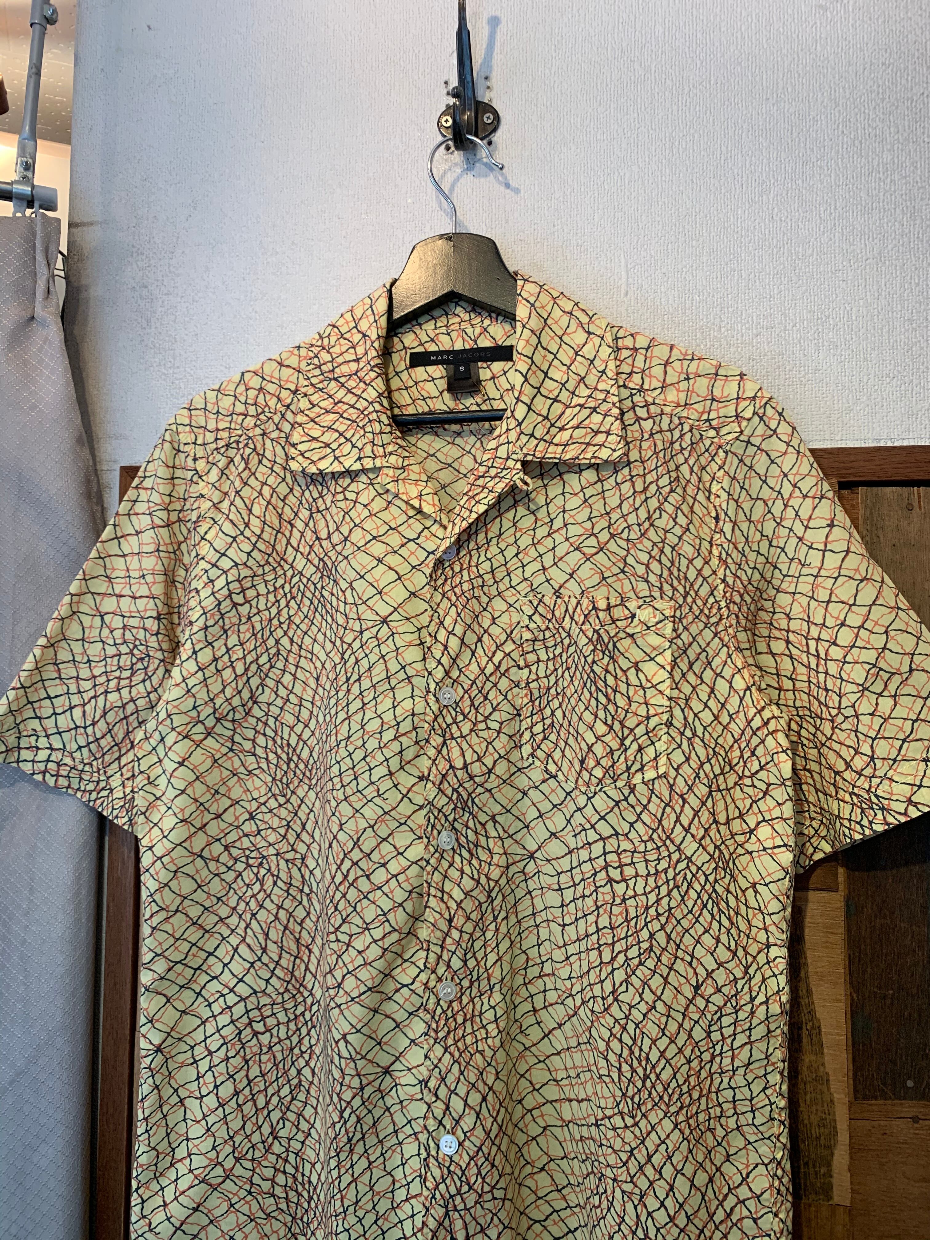 “MARC JACOBS” beige×black×pink orange unique pattern S/S open-collar shirt