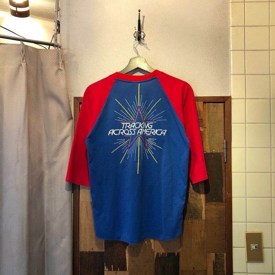 “anvil” Blue×red poly/cotton printed raglan sleeve printed Tee