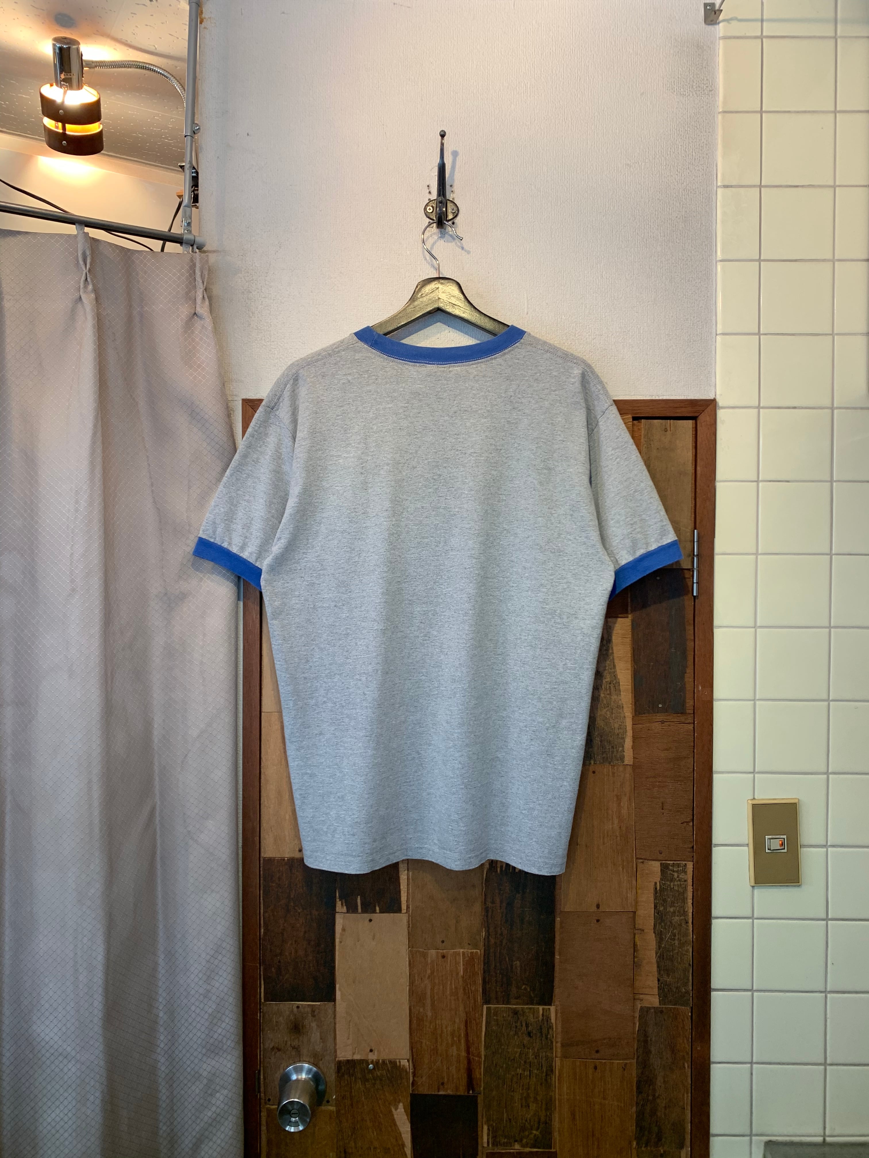 “DISNEY” gray×blue cotton/poly printed S/S ringer T-shirt