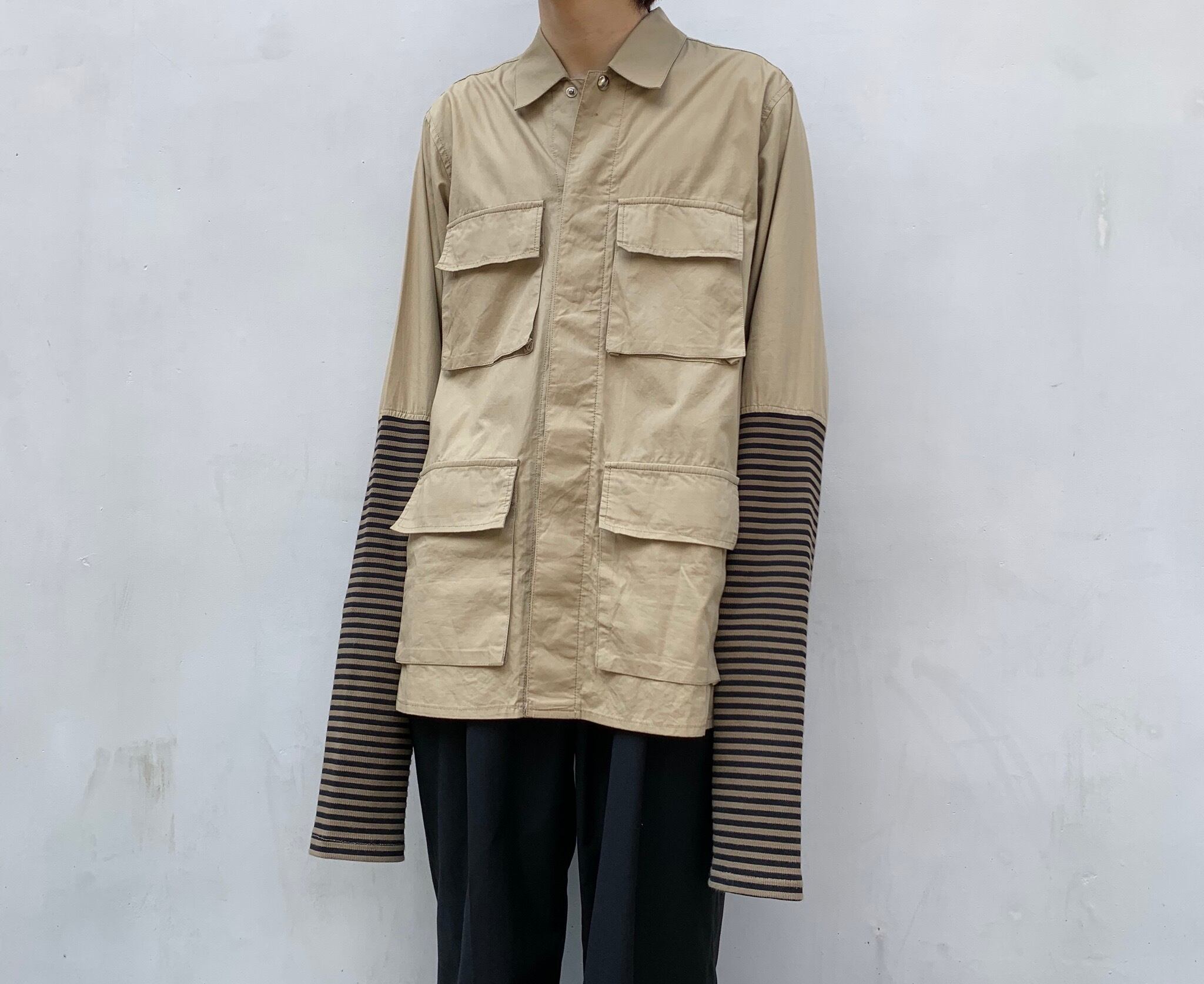 “MILK BOY” 90’s beige border switch design L/S shirt JKT