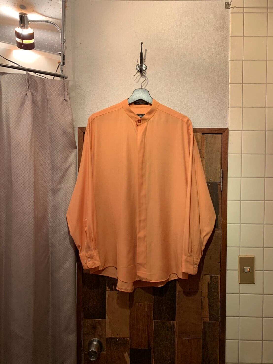 “DOMANI” Orange rayon/poly L/S band collar shirt
