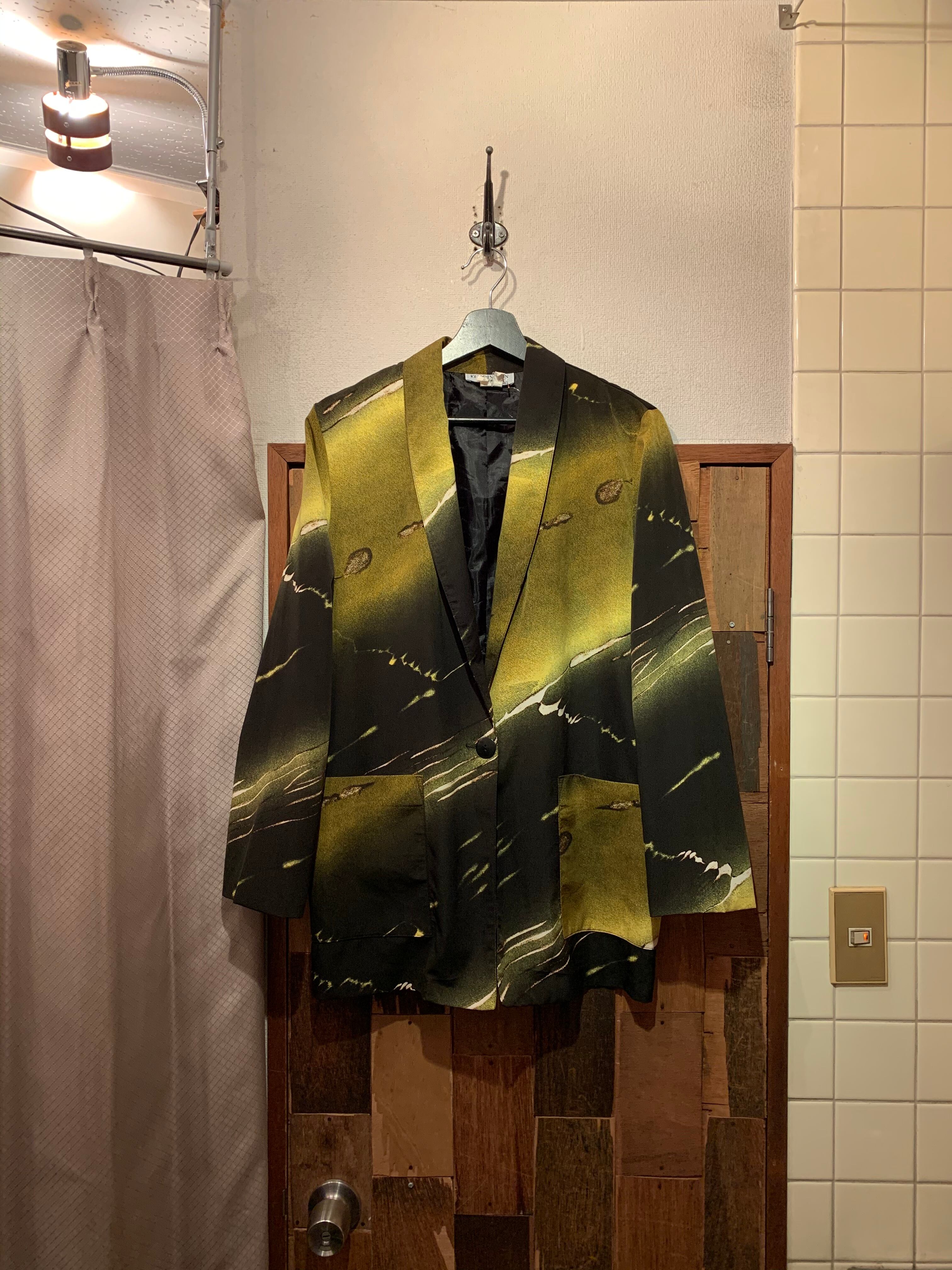 “KENSINGTON SQUARE” black×yellow repeating pattern shawl-collar jacket