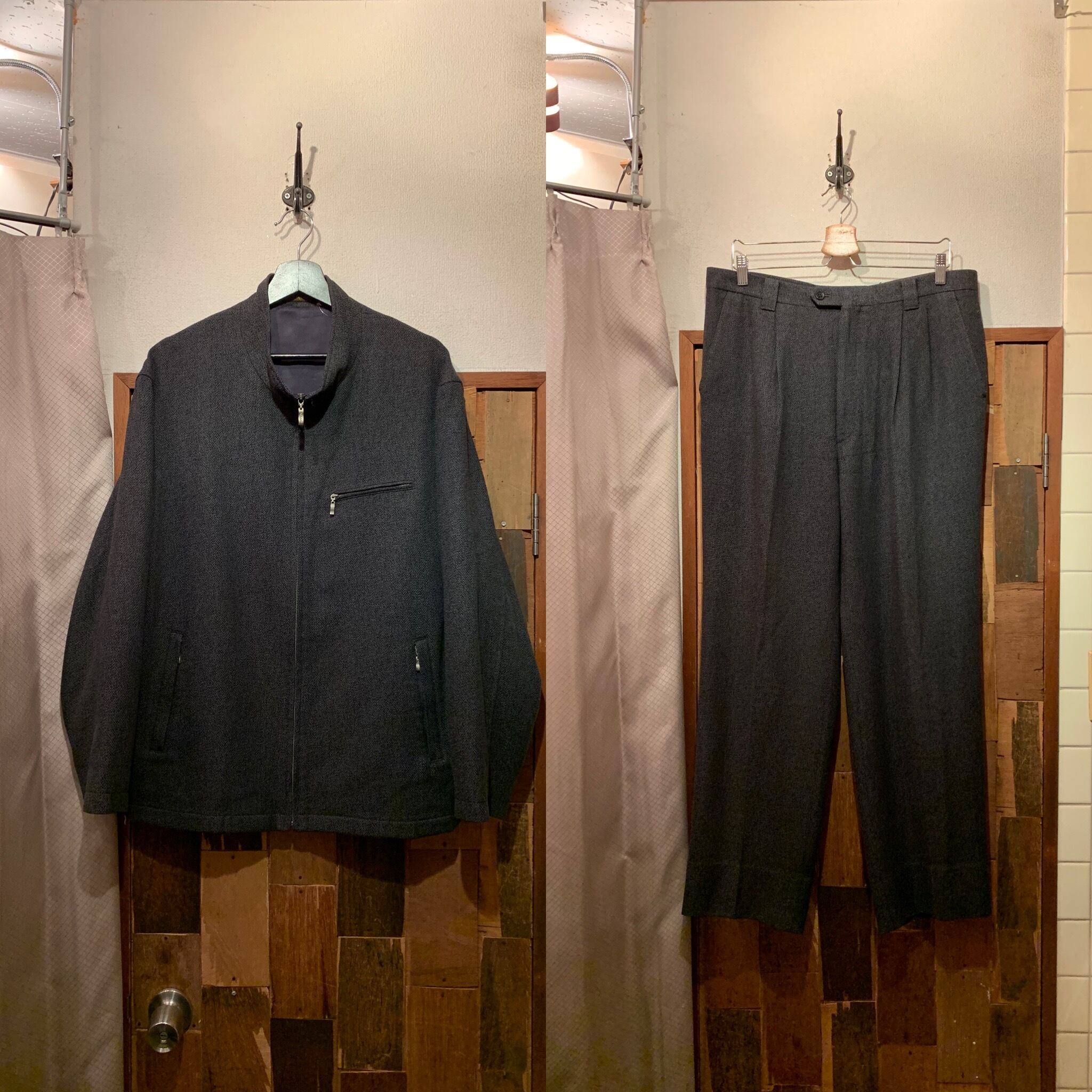 “ARAMIS” charcoal gray zip-up jacket×2tuck slacks 2piece set-up