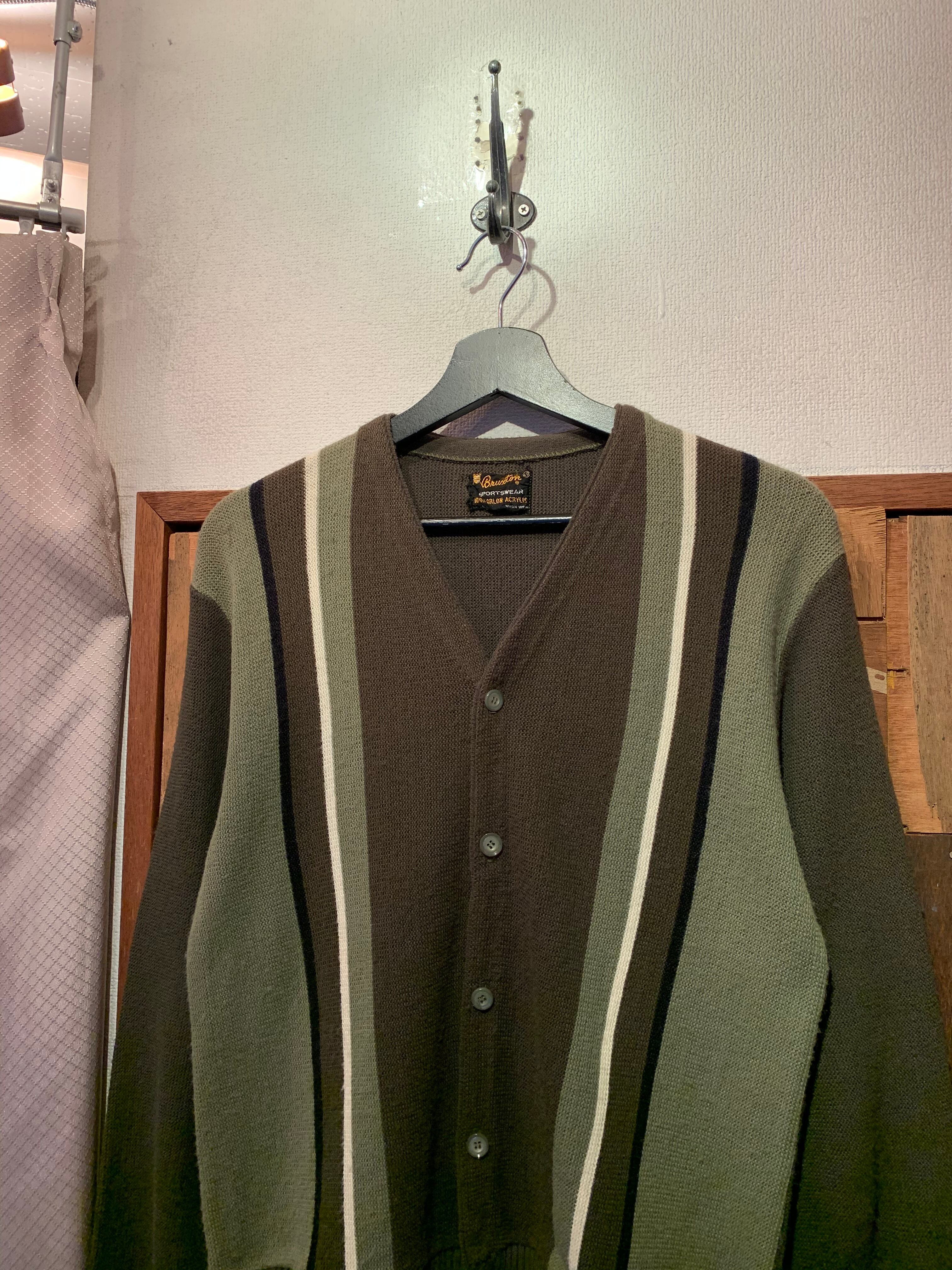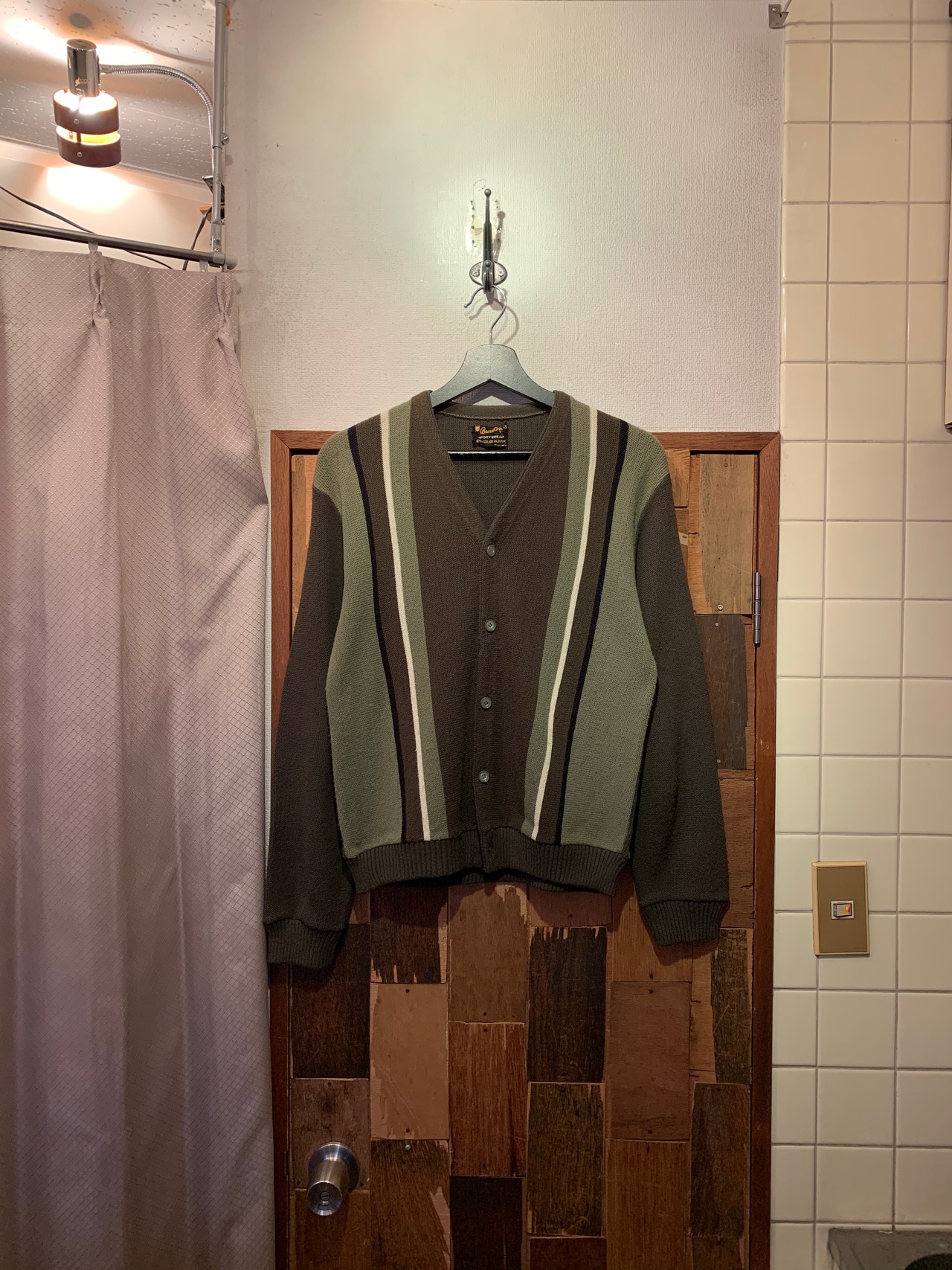 “Bruxton” 60’s~70’s khaki base stripe pattern knit cardigan