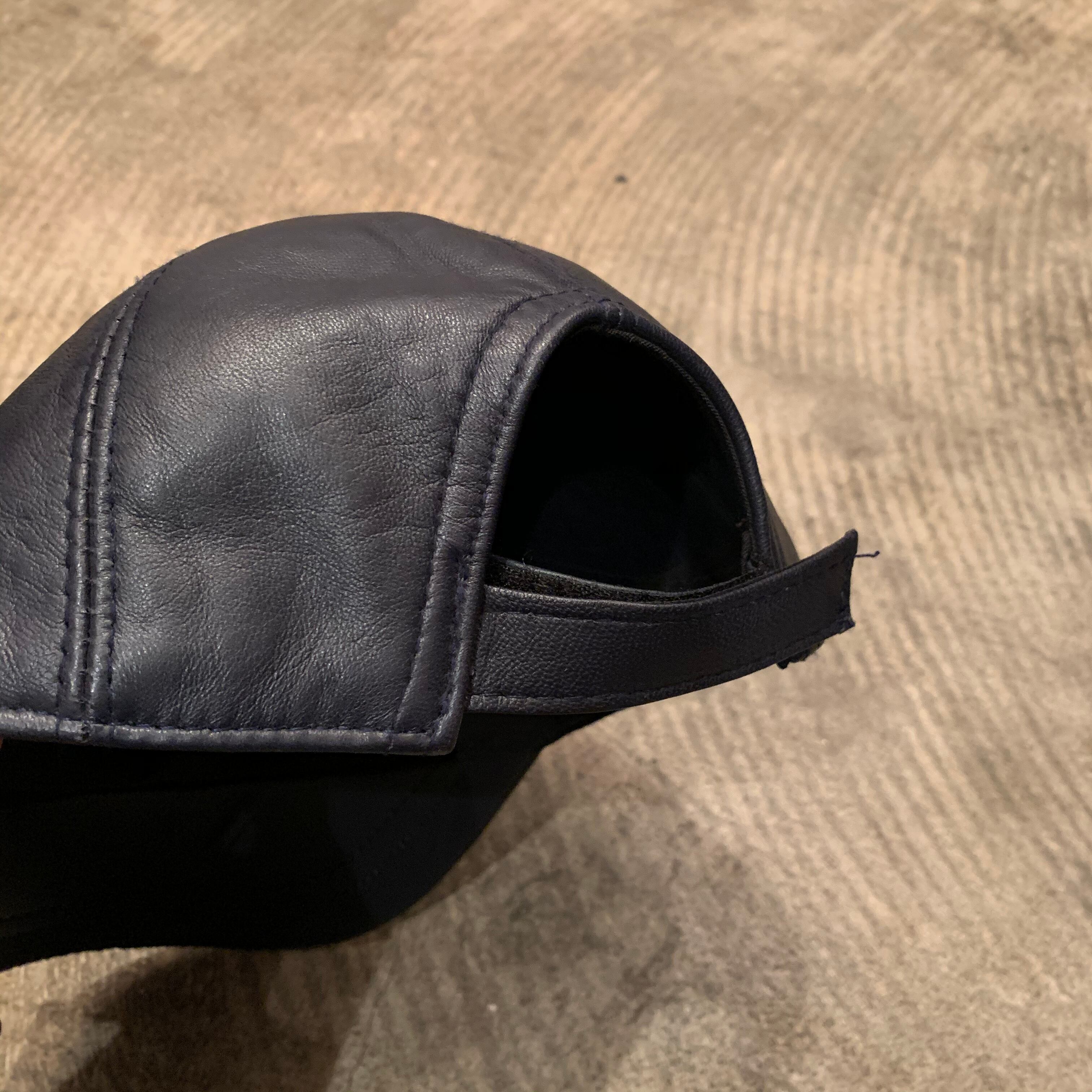 navy leather velcro adjuster cap