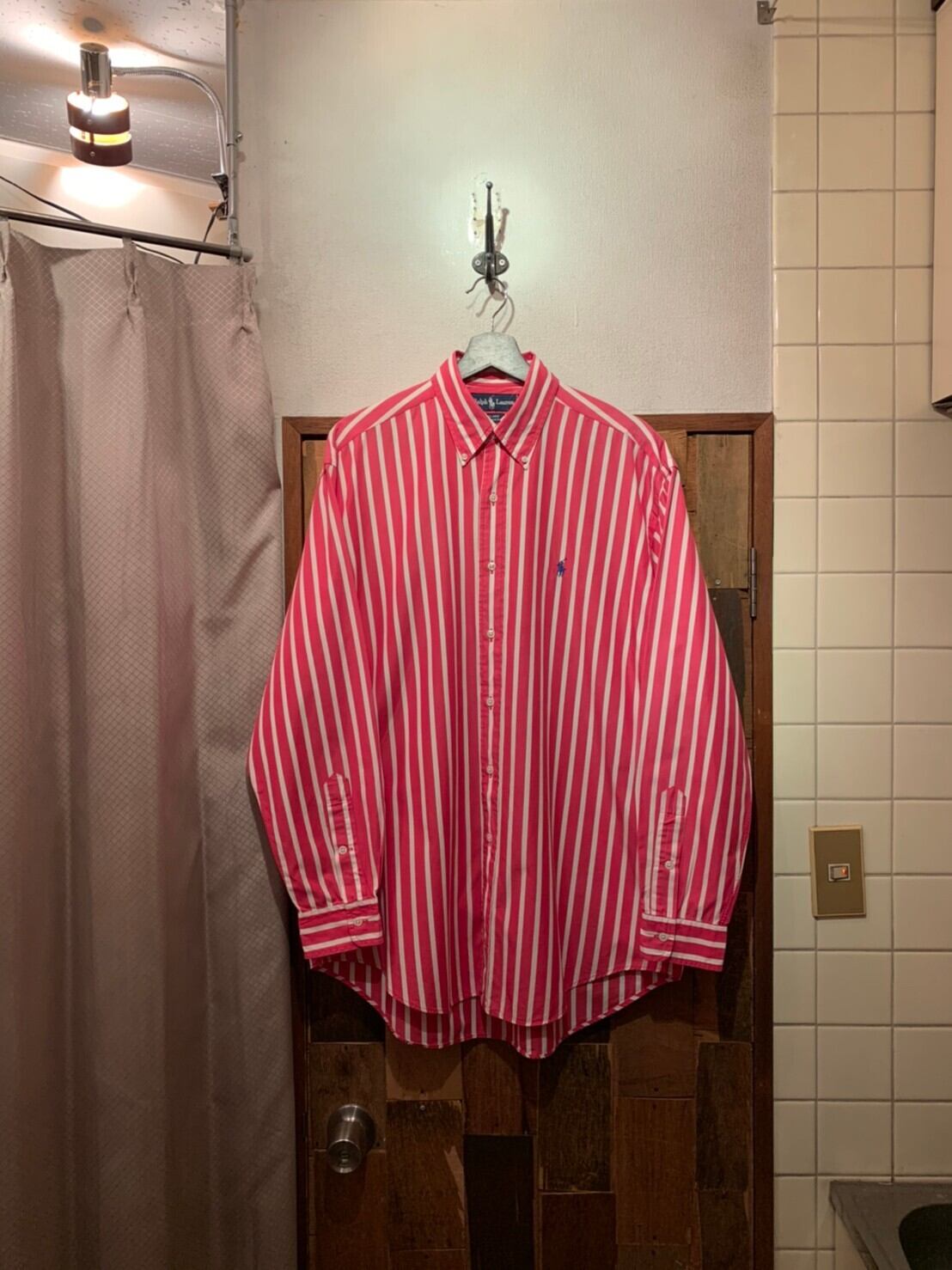 “Ralph Laurent” Pink×white cotton design L/S stripe B.D shirt
