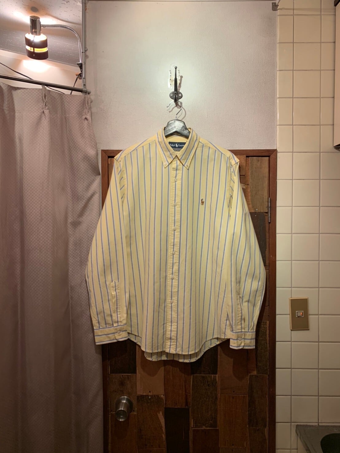 “Ralph Laurent” Yellow×blue×white cotton design point logo L/S stripe B.D shirt