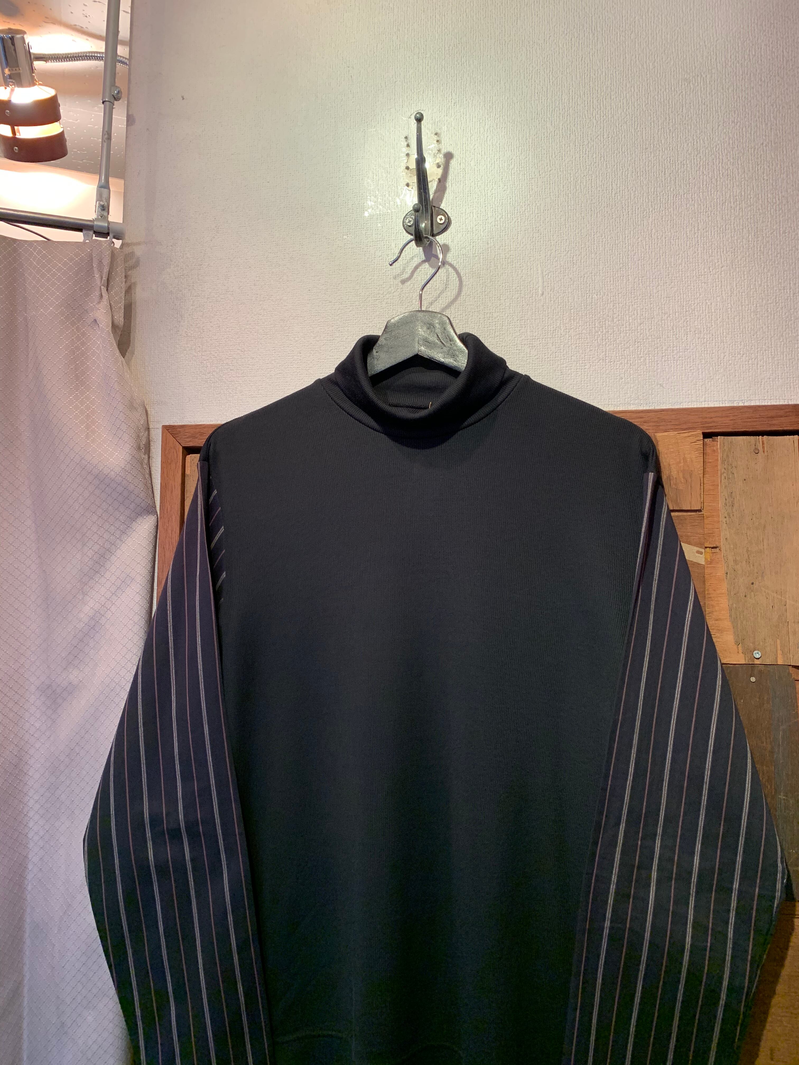 “NICOLE” 90’s black sleeve switch design turtleneck cut&sewn