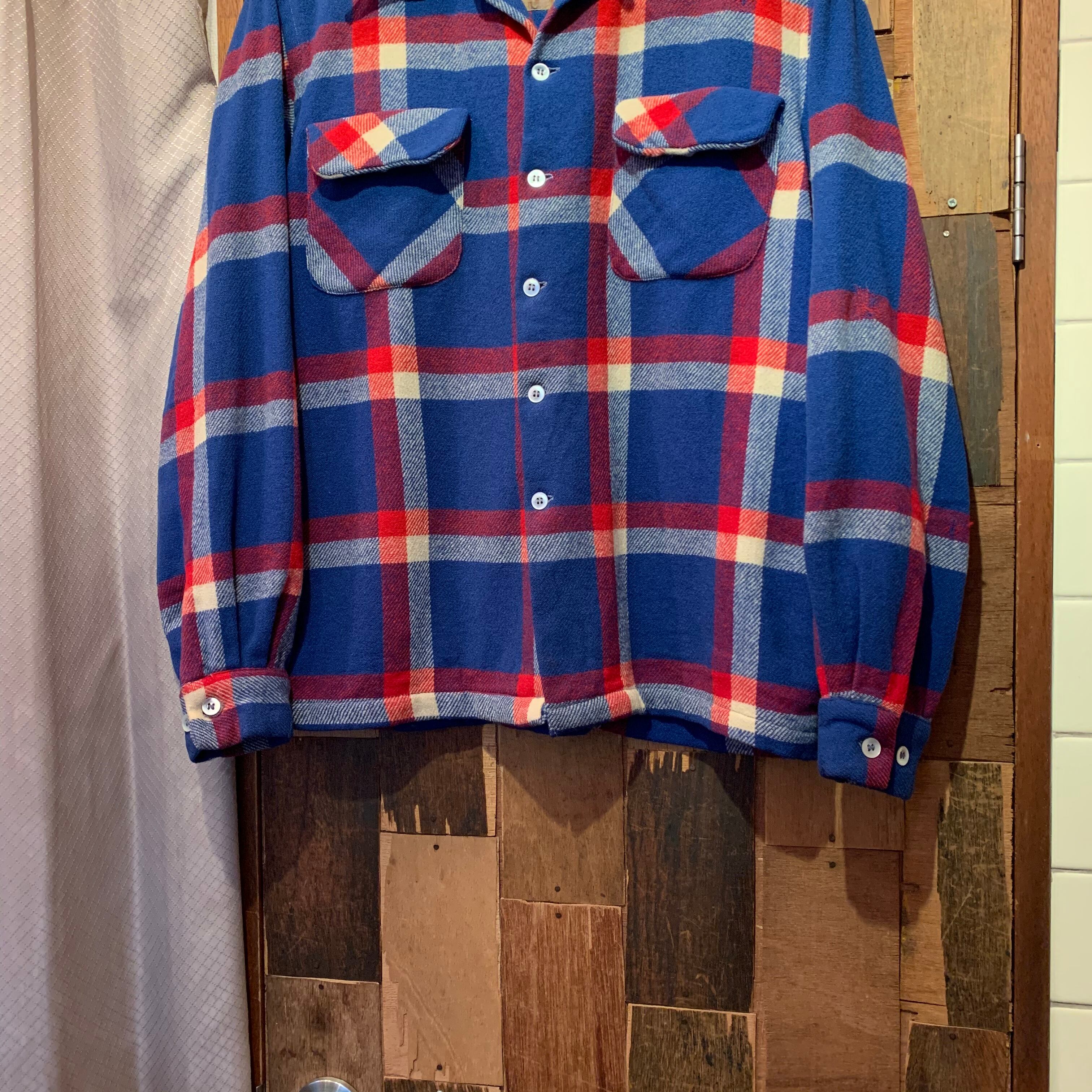 “McGREGOR” 50’s vintage tricolor color check pattern L/S open-collar shirt