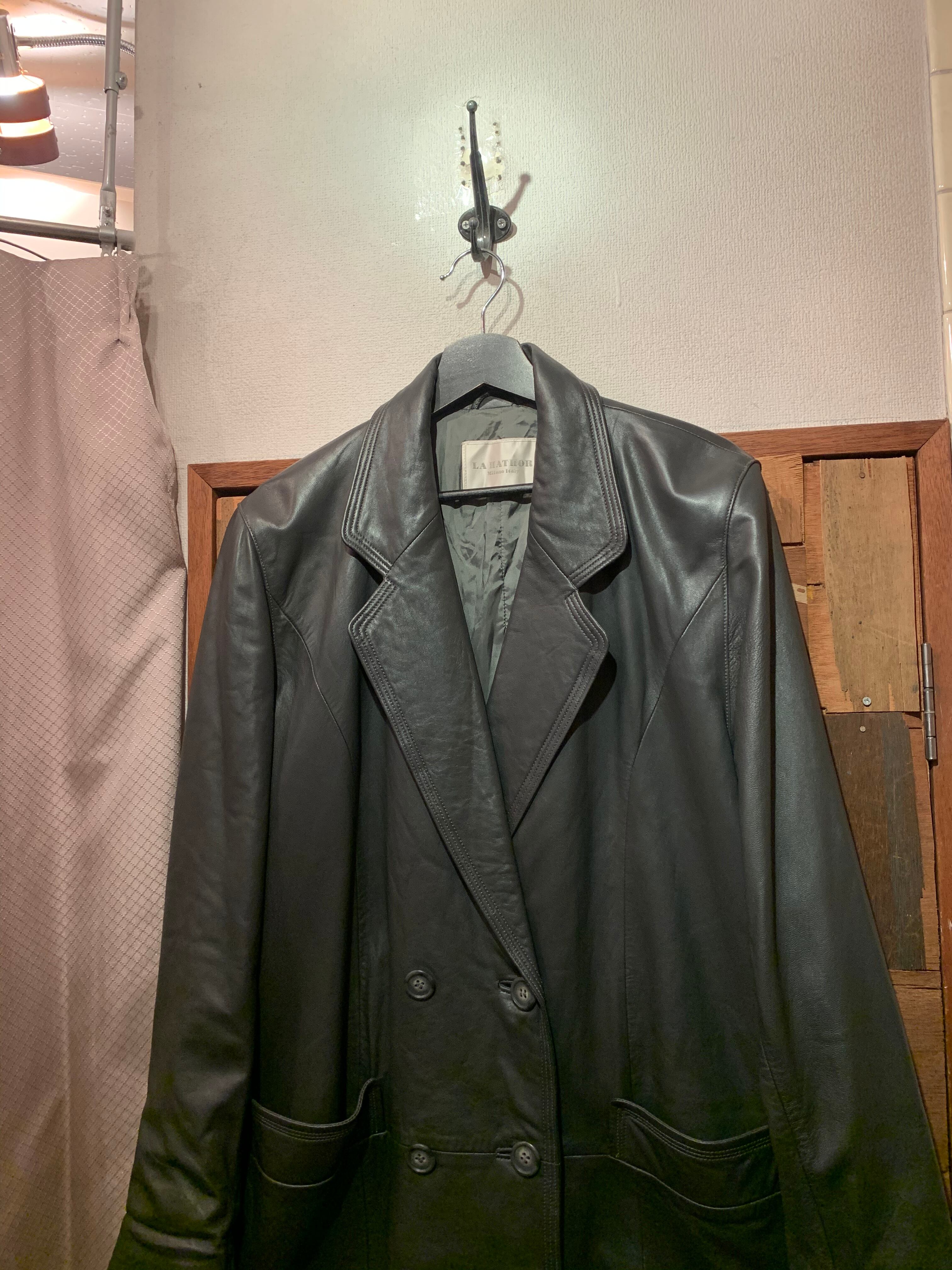 “LA HATHOR” charcoal gray sheep leather double breasted jacket coat