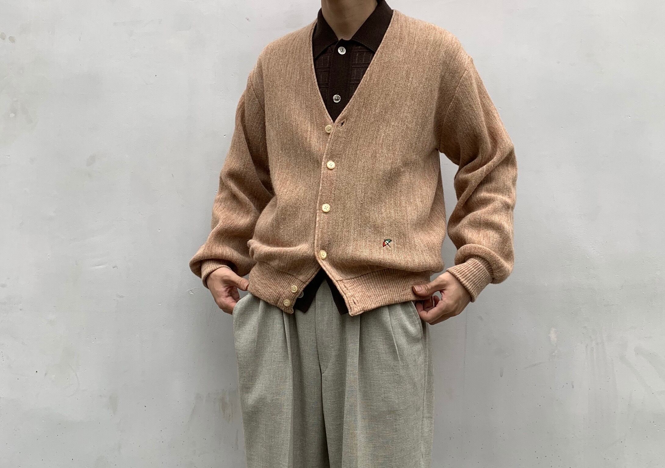 “Arnold Palmer” 90’s salmon beige point logo knit cardigan