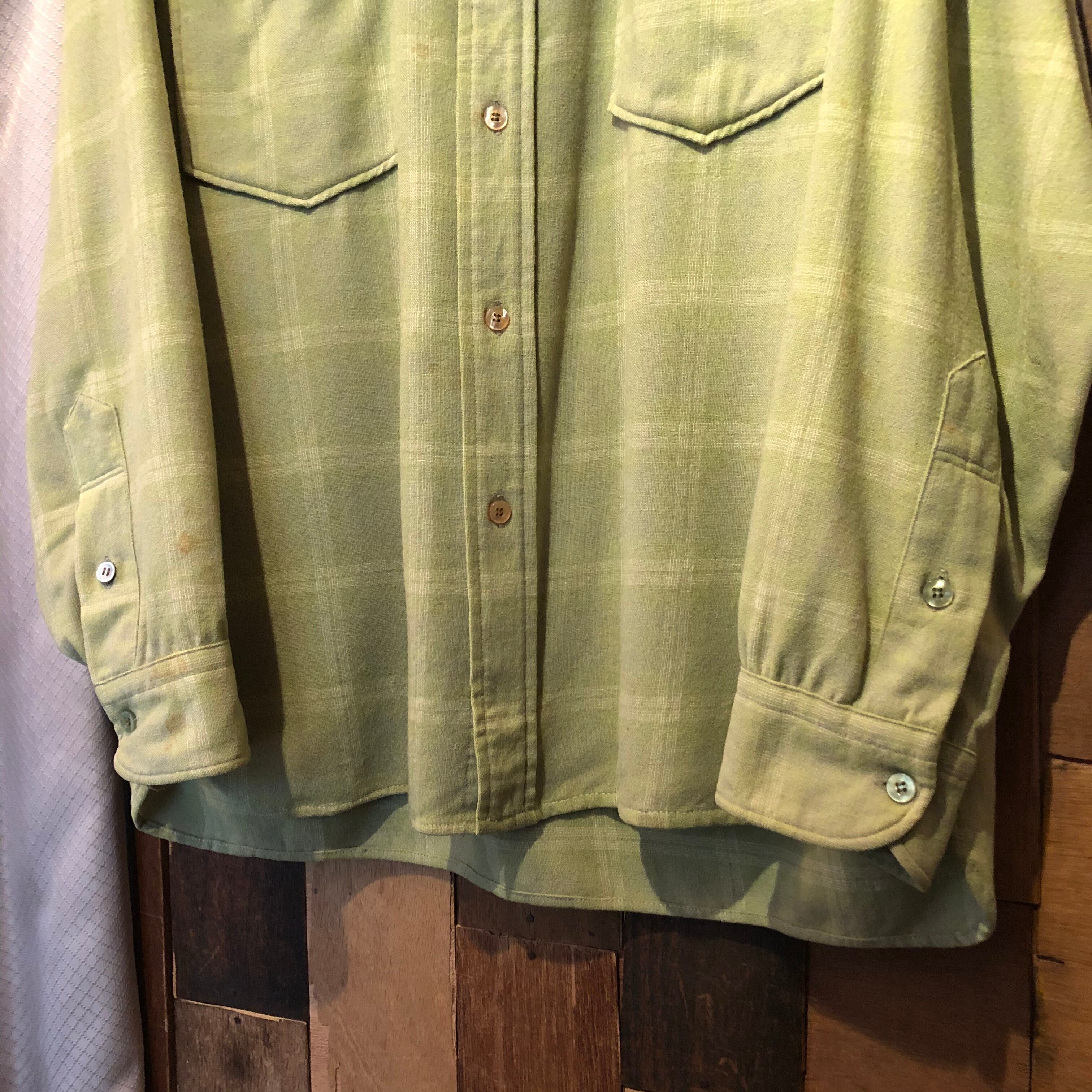 “PENDLETON” 70’s vintage Sage green wool base L/S check shirt