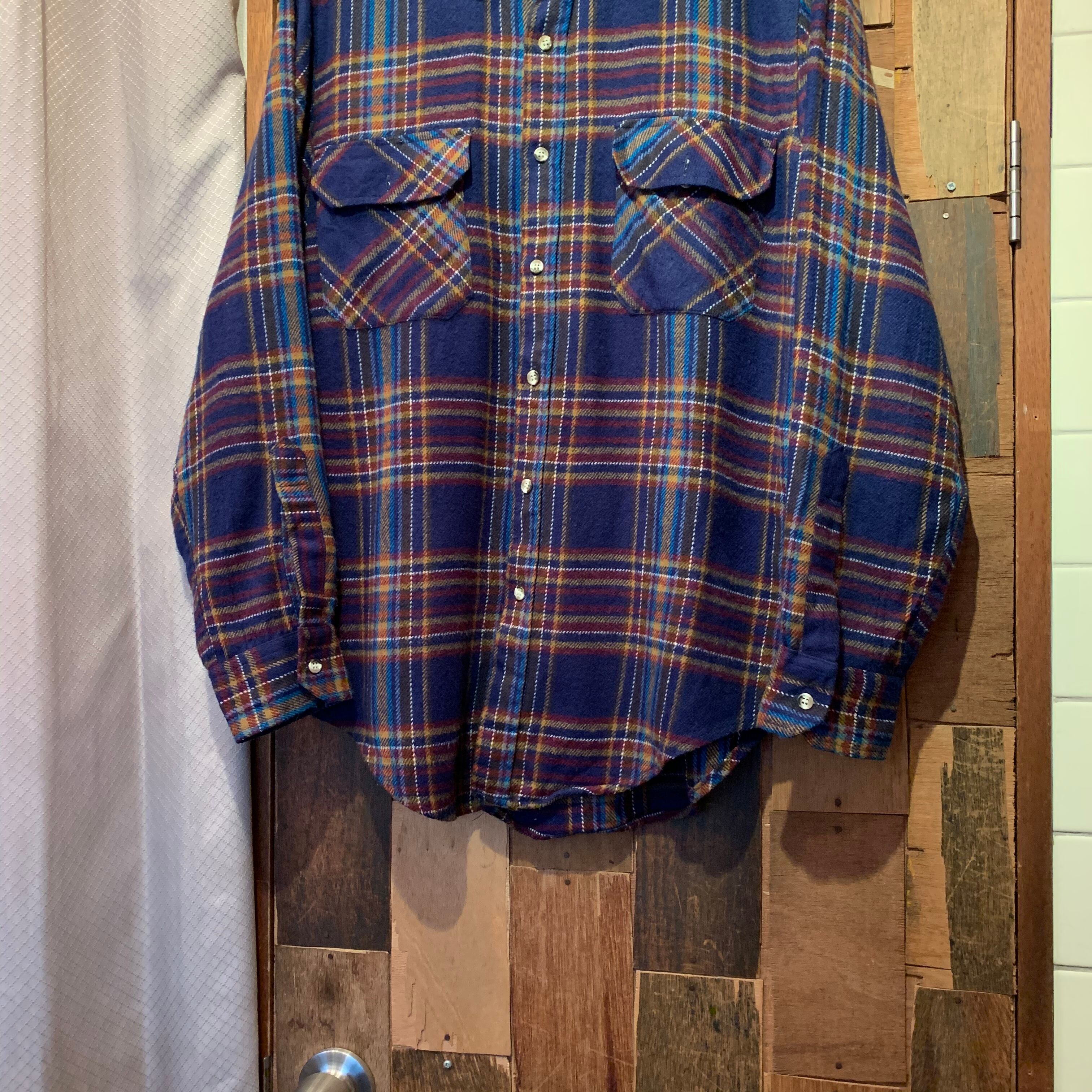 “ST.JOHN’S BAY” 80’s~90’s navy base check pattern L/S shirt