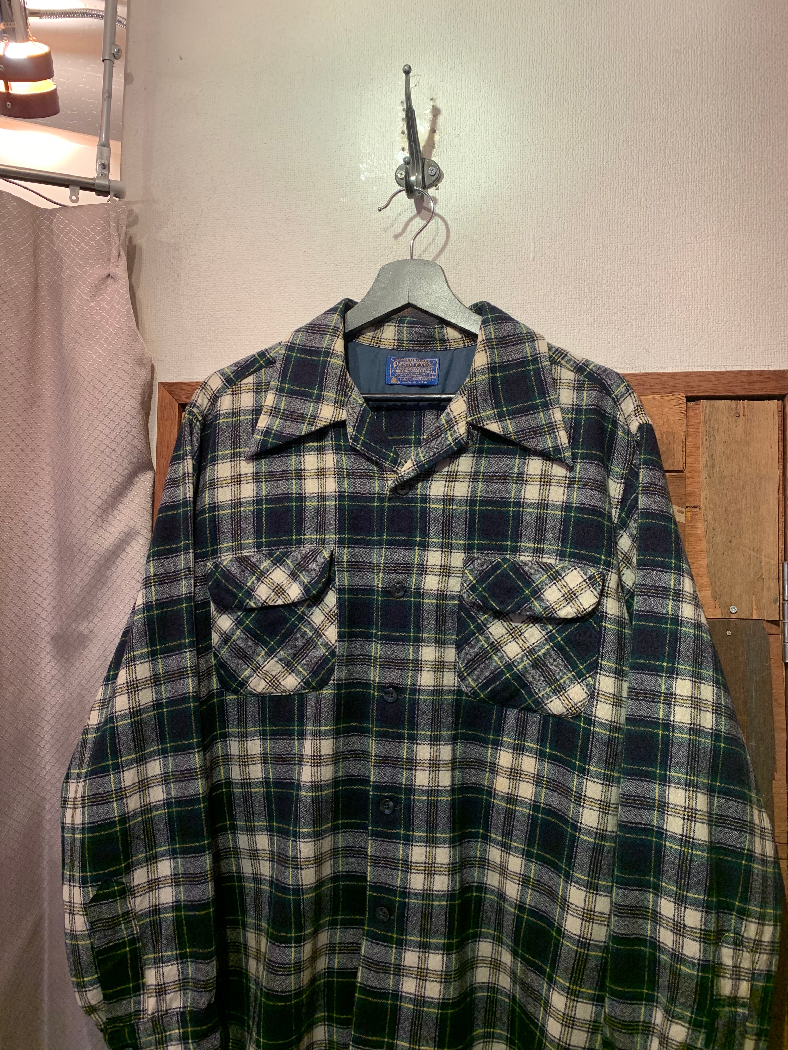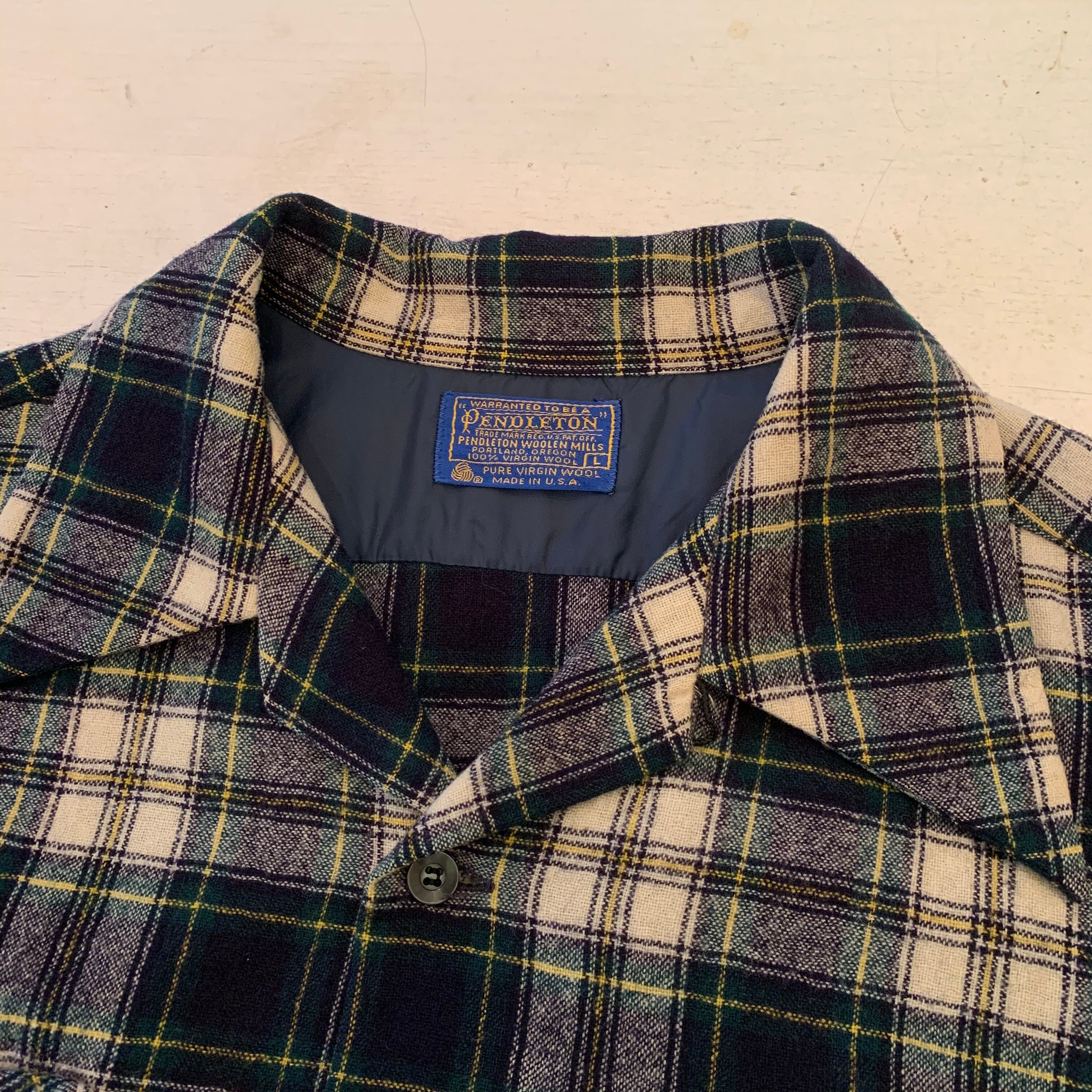 “PENDLETON” 70’s vintage multi color check pattern L/S open-collar shirt