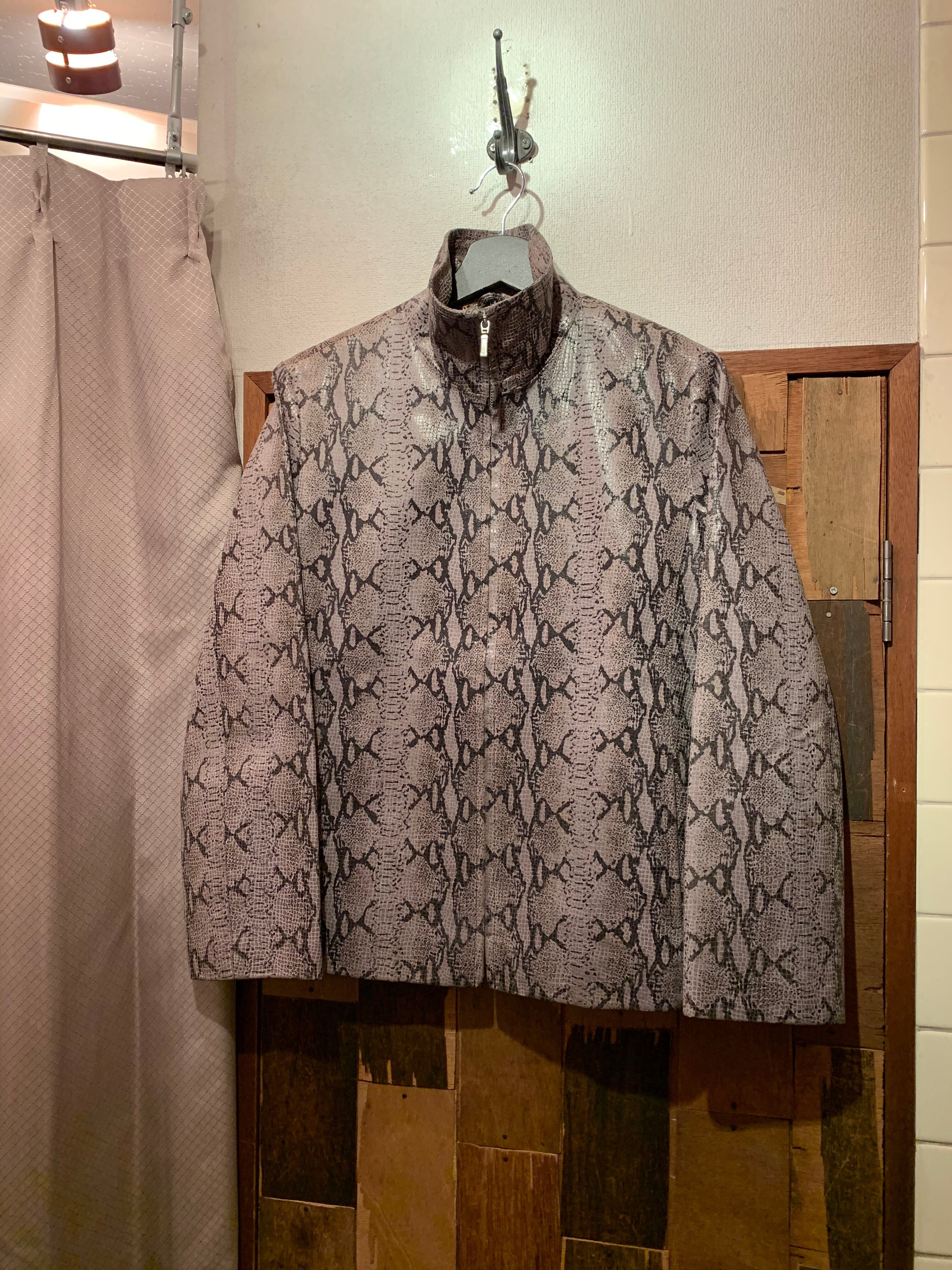 “BALMAIN” 90’s greige cow leather python pattern high-neck zip-up jacket