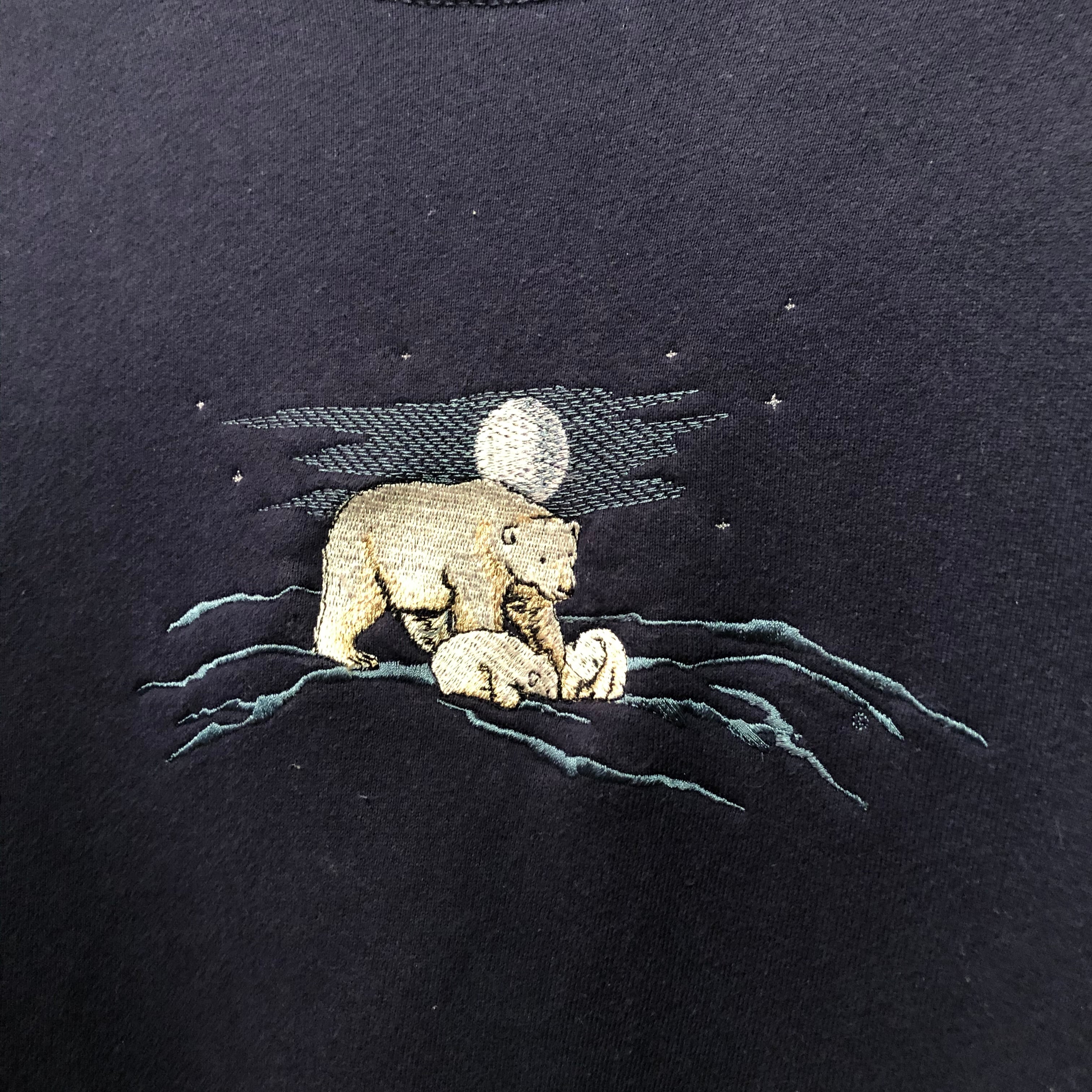 “FRUIT OF THE ROOM” Navy cotton/poly design embroidery L/S sweat