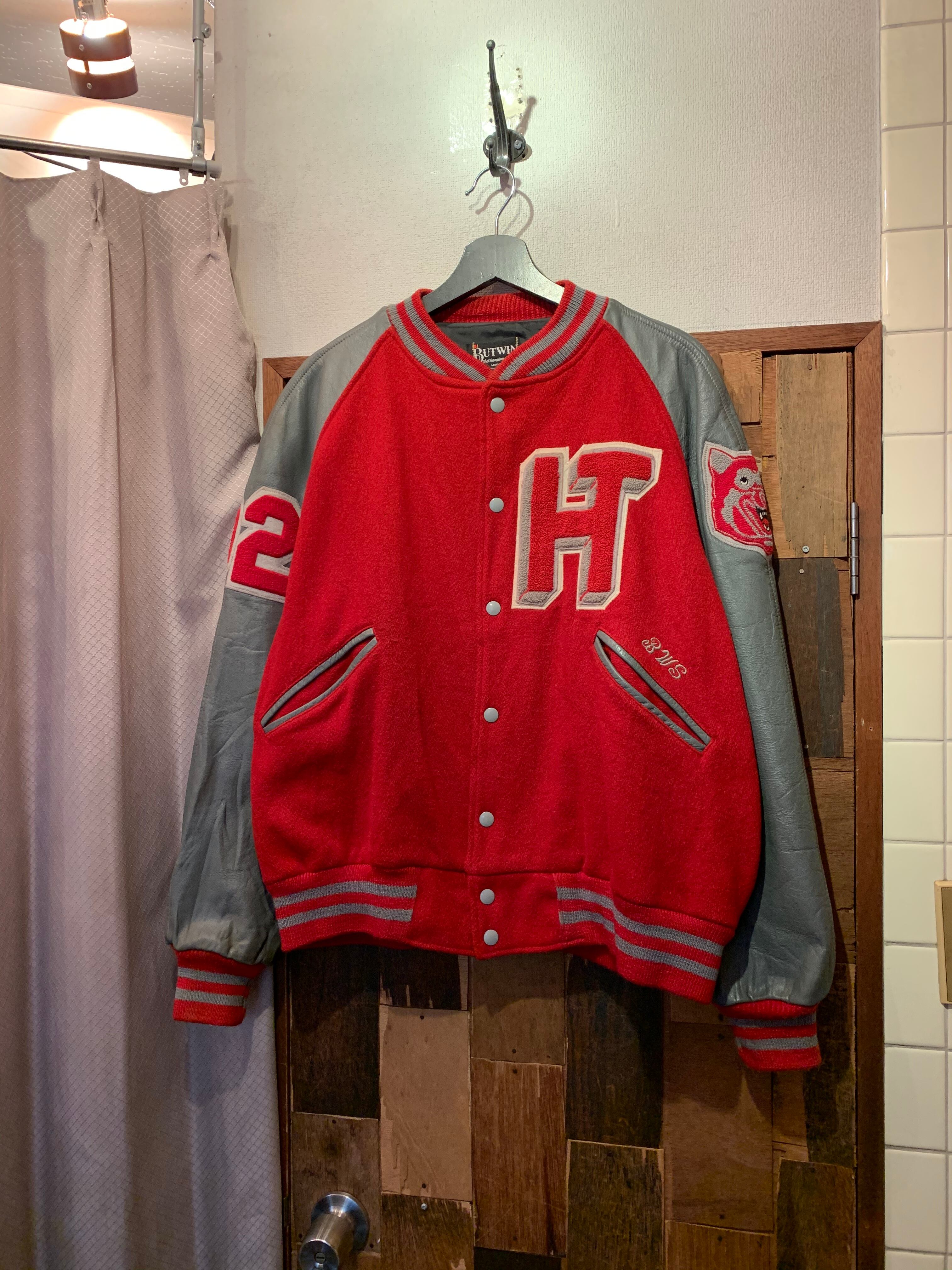 “BUTWIN” 80’s~90’s red×gray sleeve leather stadium jumper