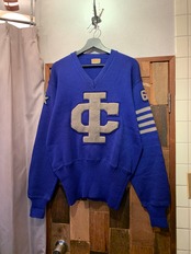 “DKM” 50’s~60’s vintage blue wool v-neck lettered sweater