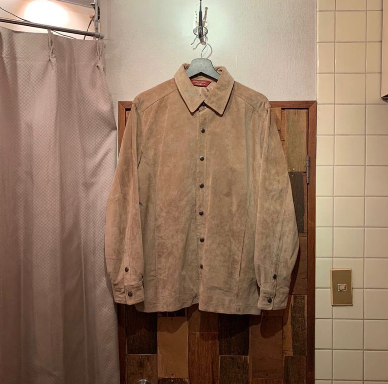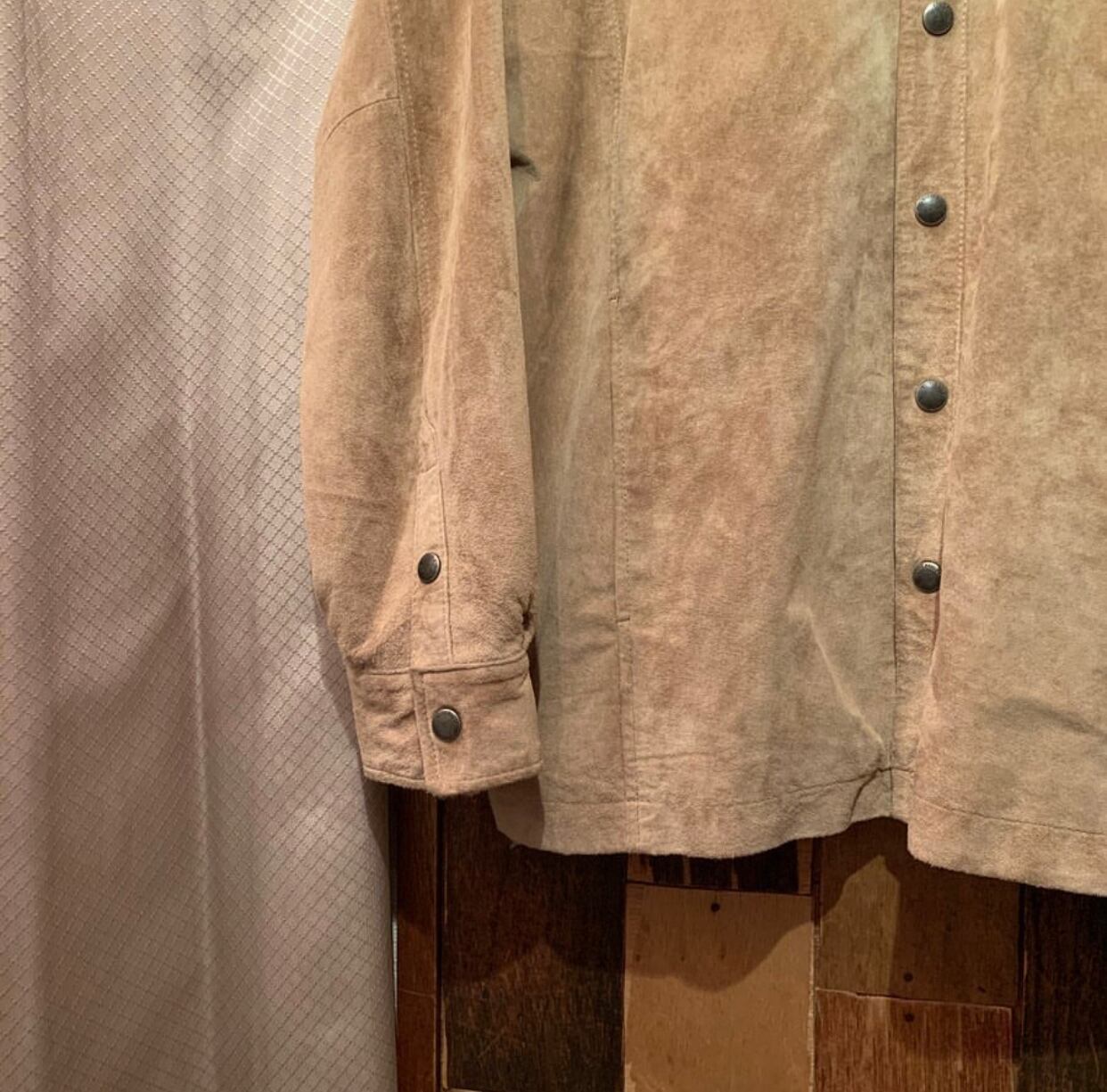 “Eddie Bauer” brown nubuck leather design L/S snap button shirt